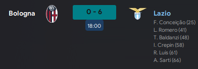 Лацио забирает 4-ую ЛЧ, а мы квалифицировались в ЛЕ на следующий сезон. итоговая таблица и результаты оставшихся матчей. ожидаемо въебали Реалу, да и в целом скомкано провели концовку сезона. матч против Брайтона - полный пиздец. впереди плотное ТО, бюджет на усиление просто смешной - 62 миллиона. с учетом потенциальных трансферов на выход, возможно, подрастёт до сотки.
