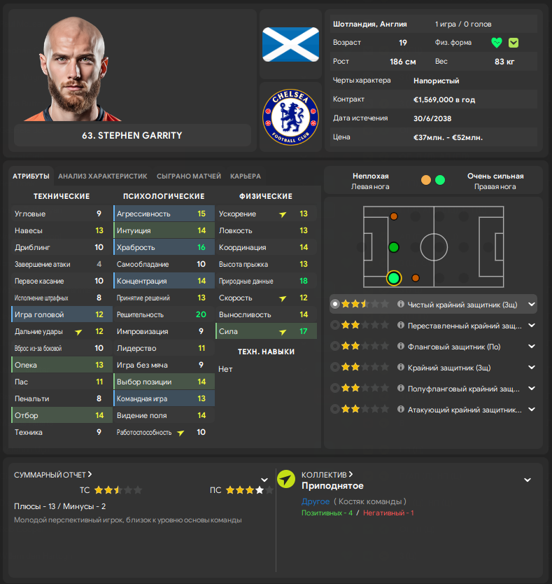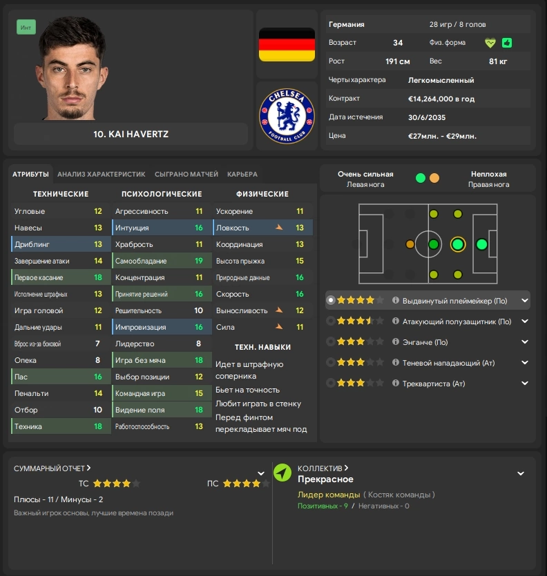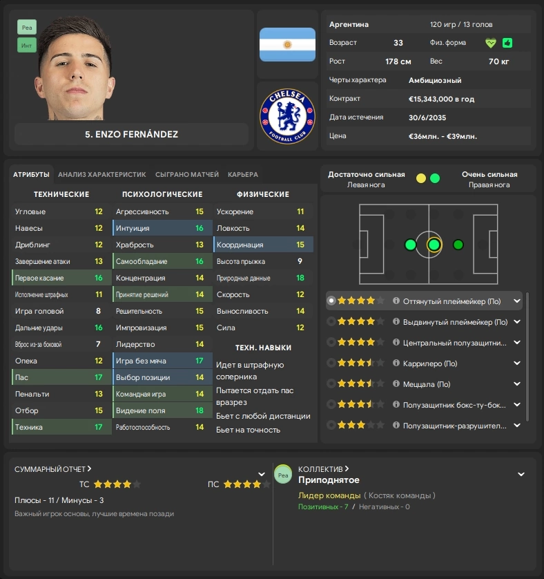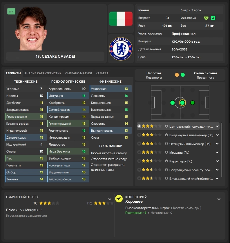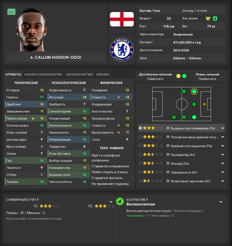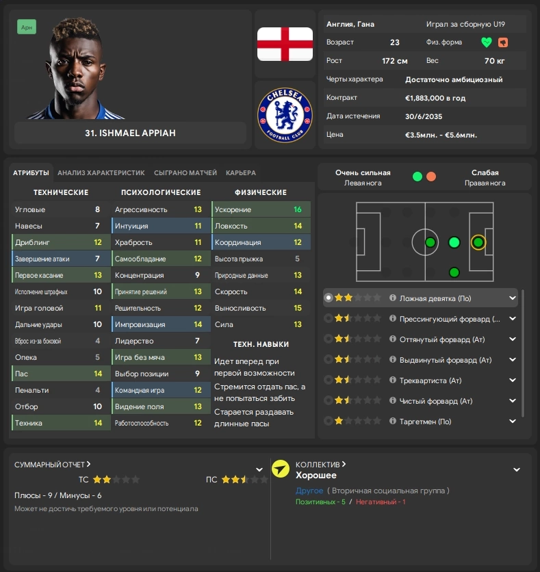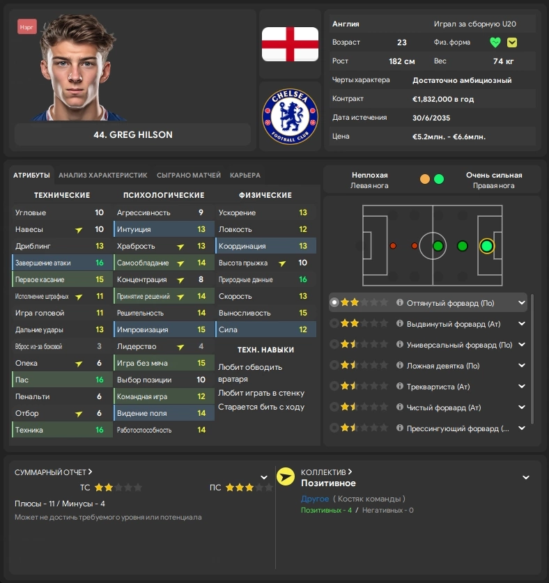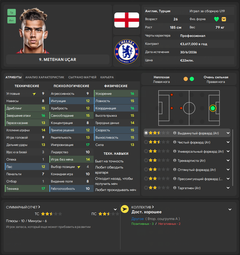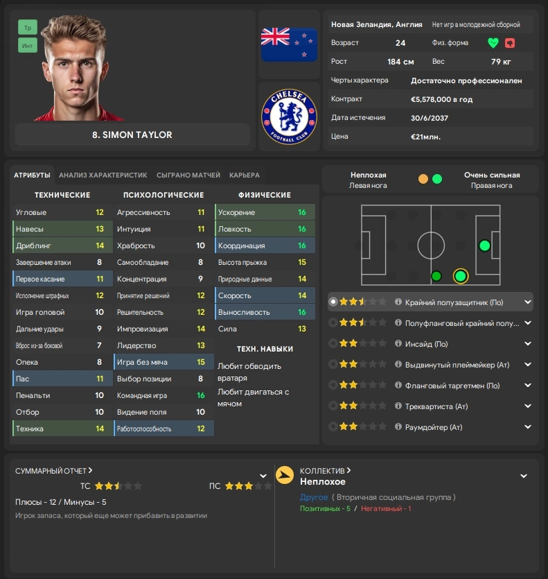 пик 1 как грится планета круглая, а жопа скользкая. вот мы и встретились снова. пару сезонов назад этот перец морщил попу и не хотел идти ко мне в Лацио за 12 миллионов в год. просил какие-то баснословные 30 и склонялся к переходу в Аль-%хуй знает%. что в сухом остатке? греет банку в Челси за 7 миллионов в год, а по контракту еще три года. подумываю трайнуть его на фланге вместо Одоя. в любом случае в команде придержу, а там видно будет пик 2 греет банку под Карбони. от основы далёк, но как вариант для ротации пускай будет. сказать по нему особо нечего. будет спрос - продам пик 3 сколько бы сейвов я не начинал в разных версиях ФМа, этот хуй всегда оказывается в Челси. намазано ему там видимо. для меня - первая замена на любую позицию в атаке. зарплата раздутая, летом хотелось бы слить пик 4 16 милоионов в год за испанскую электричку, которая ходит только в одном направлении - вперёд. точно не первый вариант на выход, но и держаться я за него сильно не буду. пока что планки не роняет. останется - будет играть. нет - жалеть не буду
