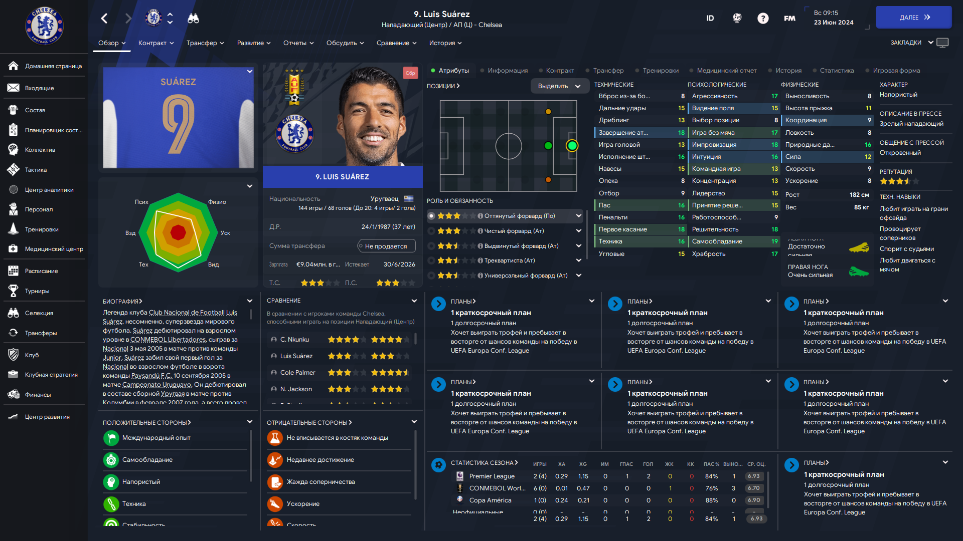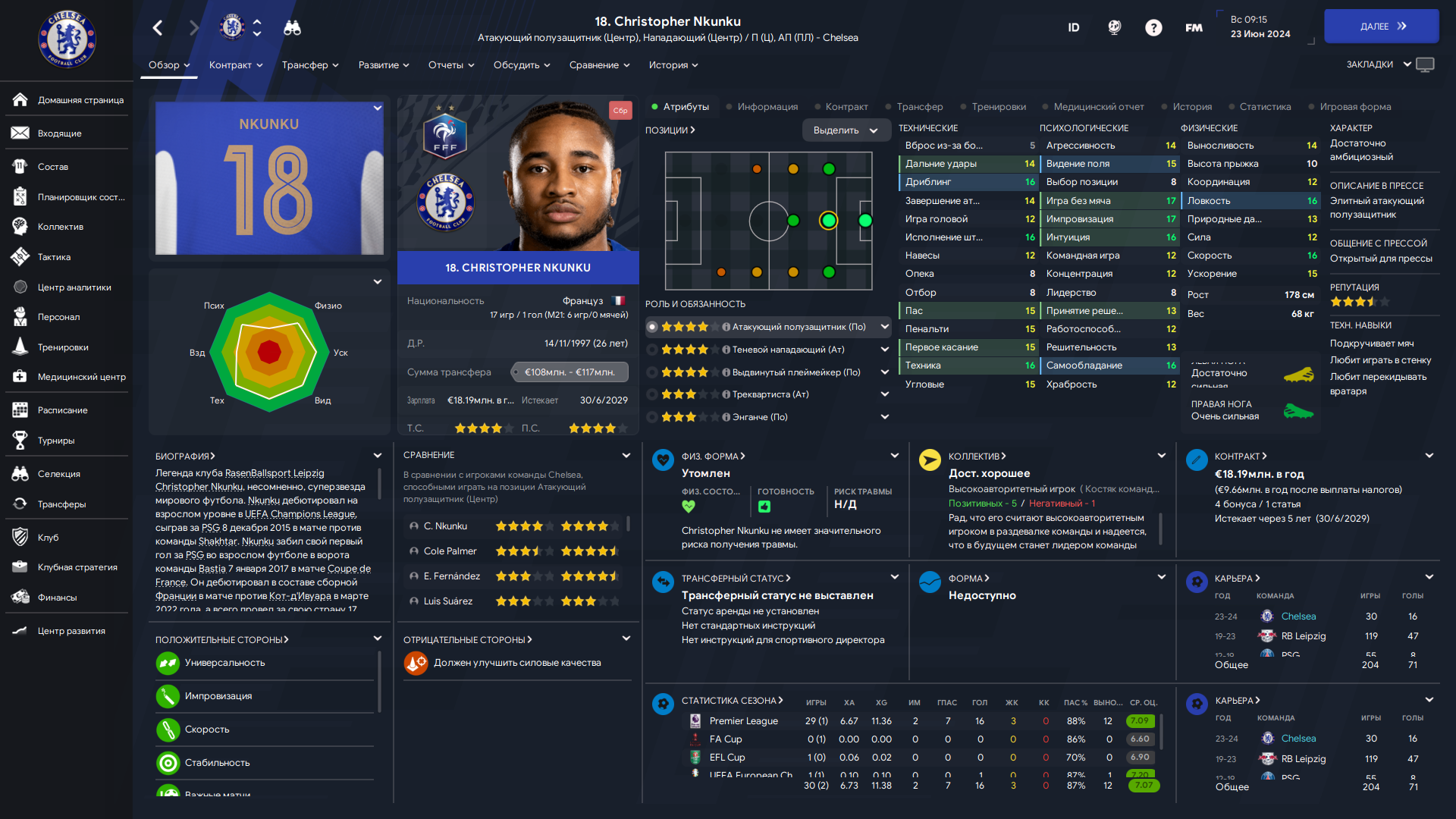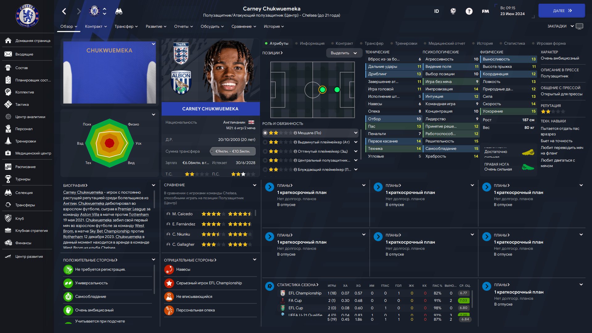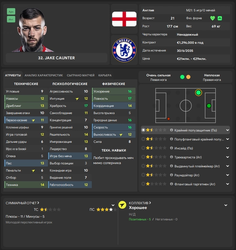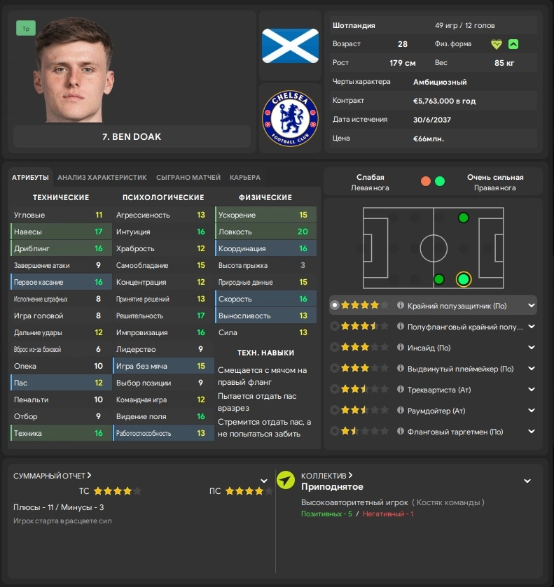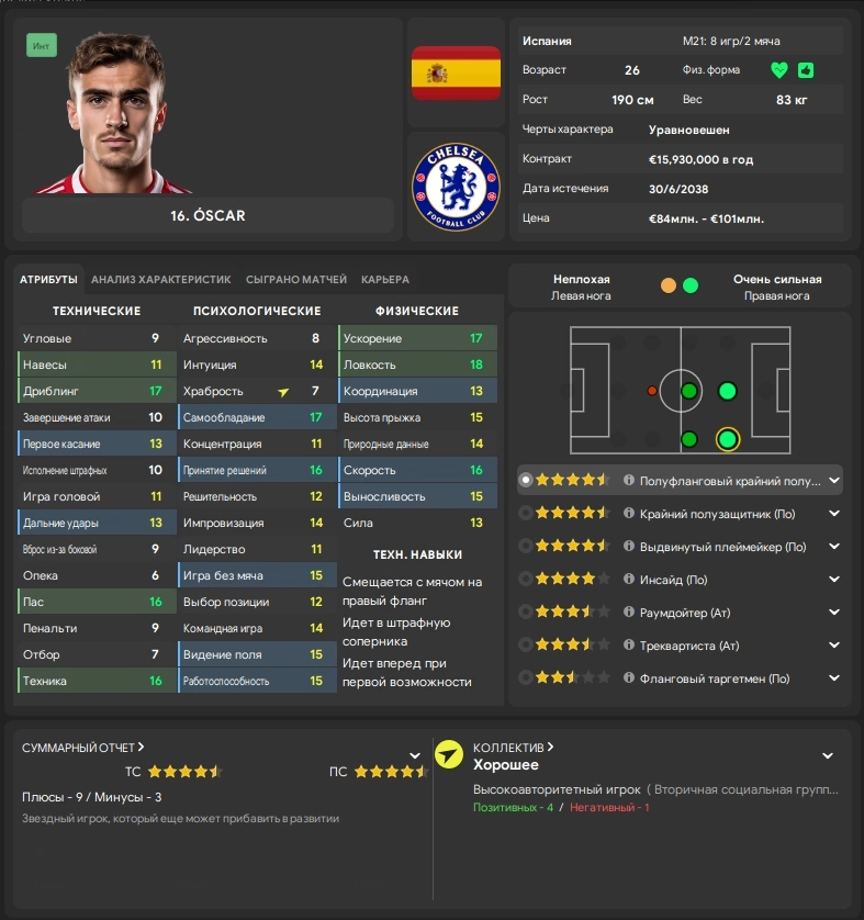 пик 1 как грится планета круглая, а жопа скользкая. вот мы и встретились снова. пару сезонов назад этот перец морщил попу и не хотел идти ко мне в Лацио за 12 миллионов в год. просил какие-то баснословные 30 и склонялся к переходу в Аль-%хуй знает%. что в сухом остатке? греет банку в Челси за 7 миллионов в год, а по контракту еще три года. подумываю трайнуть его на фланге вместо Одоя. в любом случае в команде придержу, а там видно будет пик 2 греет банку под Карбони. от основы далёк, но как вариант для ротации пускай будет. сказать по нему особо нечего. будет спрос - продам пик 3 сколько бы сейвов я не начинал в разных версиях ФМа, этот хуй всегда оказывается в Челси. намазано ему там видимо. для меня - первая замена на любую позицию в атаке. зарплата раздутая, летом хотелось бы слить пик 4 16 милоионов в год за испанскую электричку, которая ходит только в одном направлении - вперёд. точно не первый вариант на выход, но и держаться я за него сильно не буду. пока что планки не роняет. останется - будет играть. нет - жалеть не буду