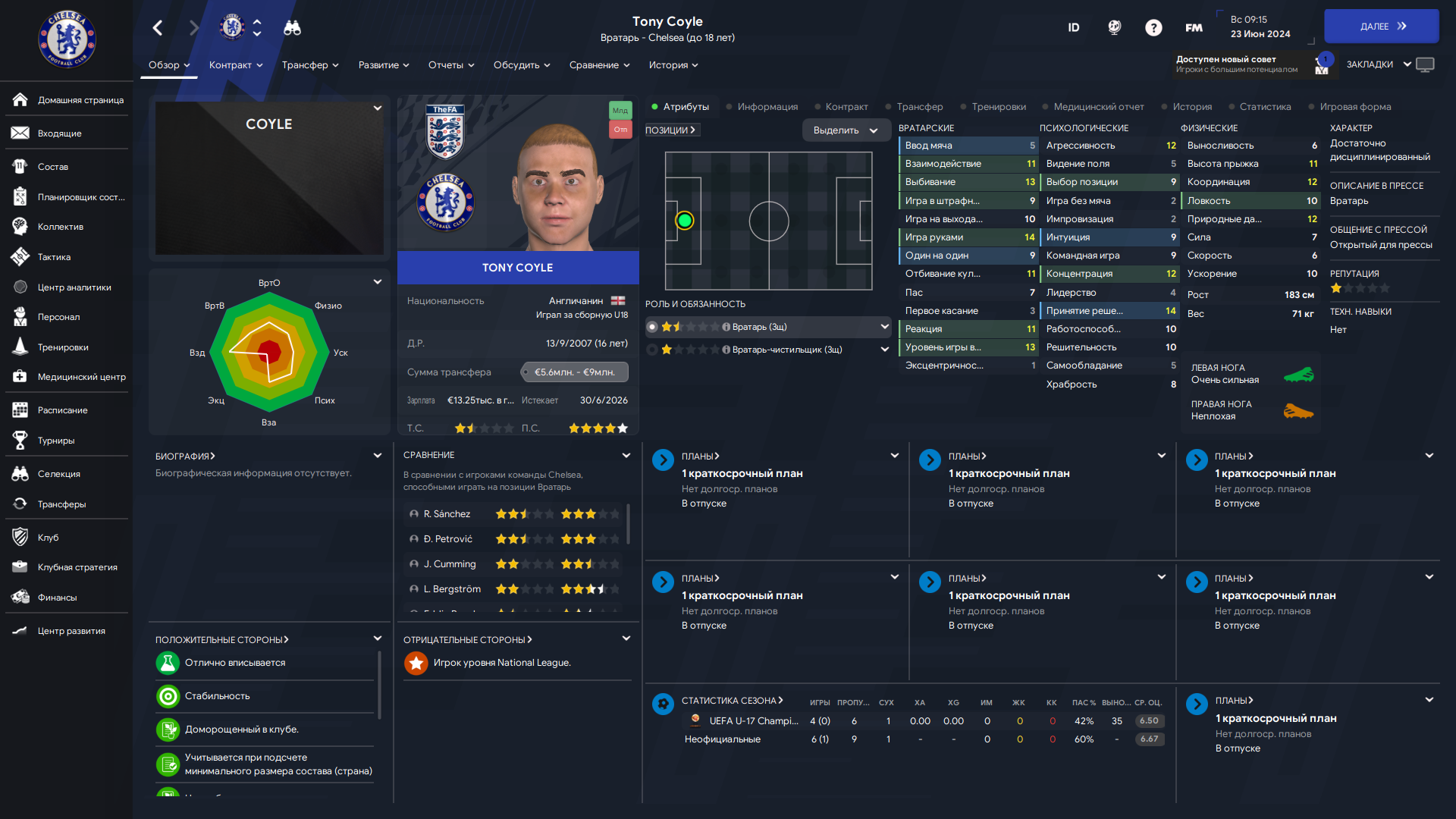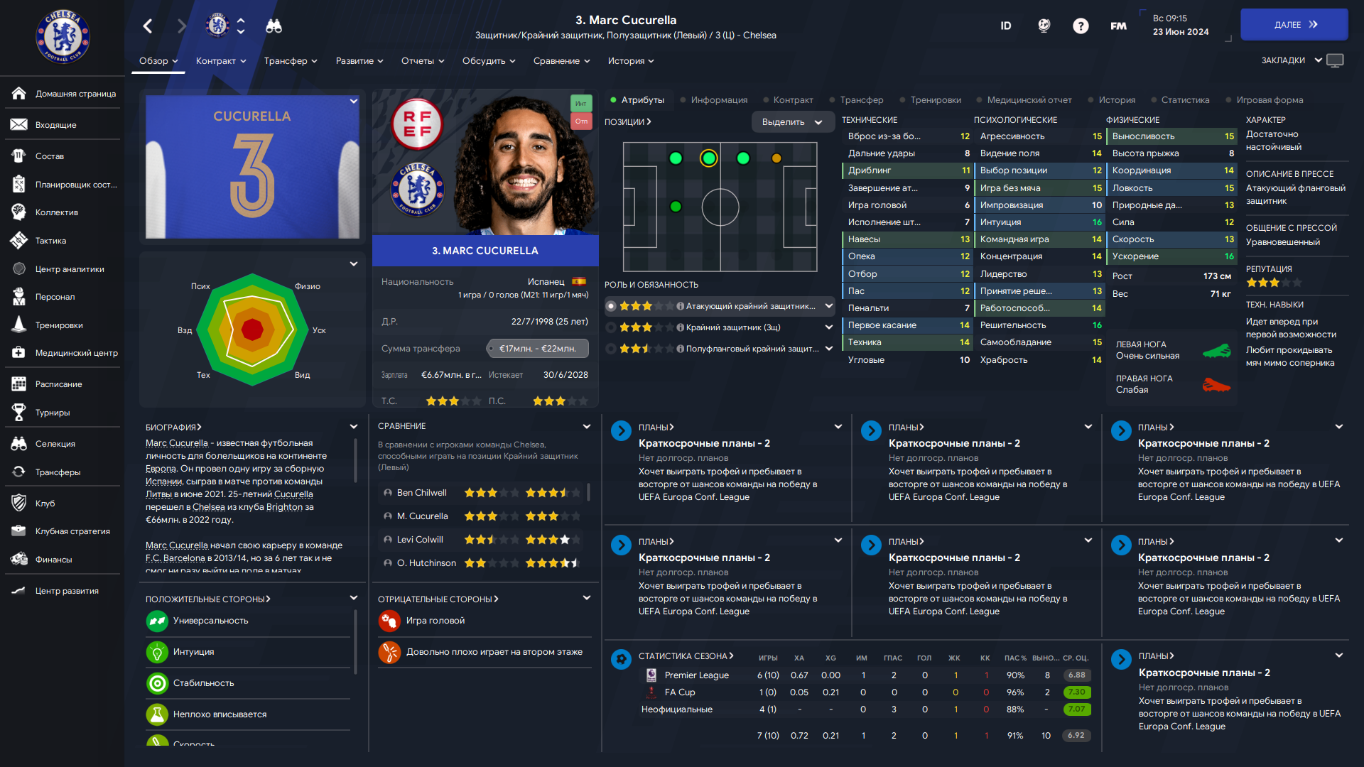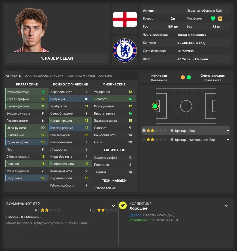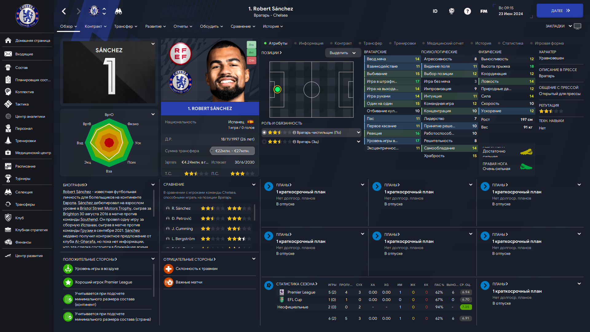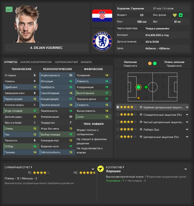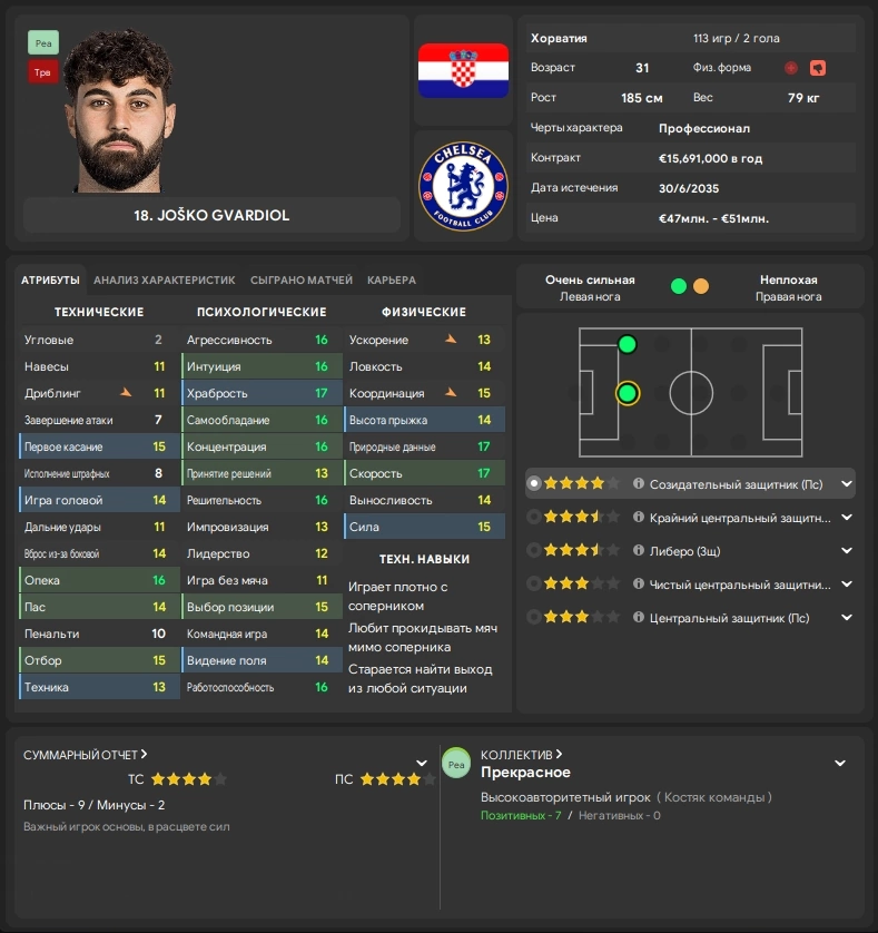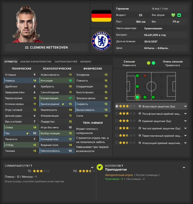 пик 1 первый из трёх мушкетёров, защищающих рамку доблестного Челси. еще больше чем на вратаря эта говяжья морда похож на персонажа какой-нибудь "жвачки" про ментов из прайм-тайма телеканала НТВ. ебало протокольное, тут не попишешь. скиллы - ебала жаба гадюку пока та дремала. из трëх говен числящихся вратарями этот наименьшее говно. в первых матчах ничего выдающегося не показал, в концовке против Лестера привёз гол, пойдя на перехват за пределы штрафной. возможно, ему действительно стоило работать забойщиком на скотобойне или служить матросом на пиратской шхуне. вратарь он посредственный. пик 2 импортозамещенный француз, который даже в свои 33 чего-то может и стоит каких-то денег. в 34-ом наступившем году уже по праву считается ветераном клуба. особо ничего не скажешь. общую картину не портит и на этом спасибо. пик 3 хорватский реген, похожий на Дэна Хукера и которого в зимнее ТО активно пытаются увести Барсуки и захолустный Наполи. как ни странно, болванчик шлëт их нахуй и даже не собирается выслушивать их предложения. по аналогии с Фофана картины не портит. если не съебнëт, то станет частью будущей команды. пик 4 фашист-унивесрал способный закрыть сразу все позиции в защите. двуногий, а посему очень ценный кадр. после того как Джеймс вильнув жопой отъебнул в Аль-Итихад, остался единственным доступным вариантом на правую бровку. учитывая стартовые 38 миллионов и вырученные за трансфер 14, на усиление имеем 44 миллина. не сходится дебит с кредитом? все верно. часть денег перевел в зарплатный фонд, чтобы убрать долги и заиметь хоть какие-то средства на зарплату будущему усилению. возможно ли достойно усилить проблемную позицию в топовом клубе за 44 миллиона? посмотрим