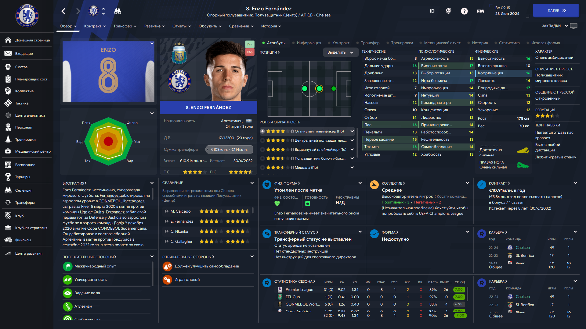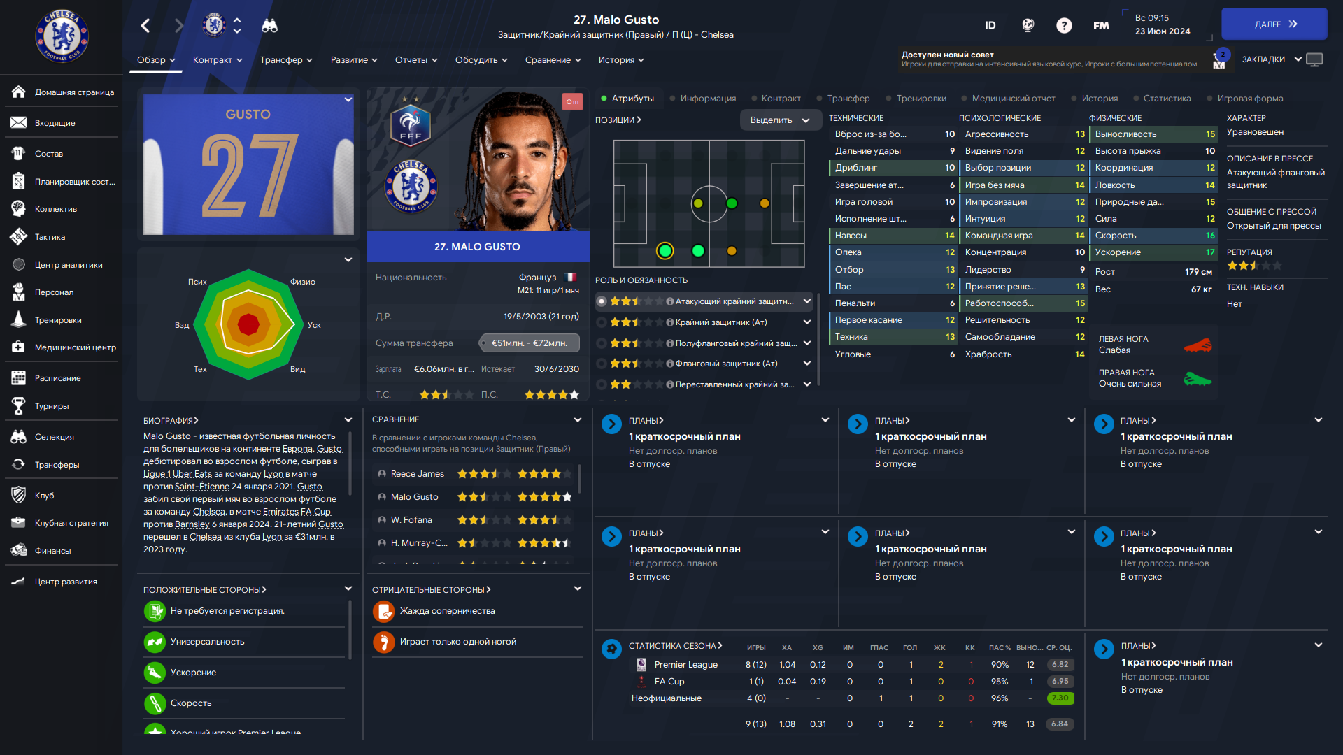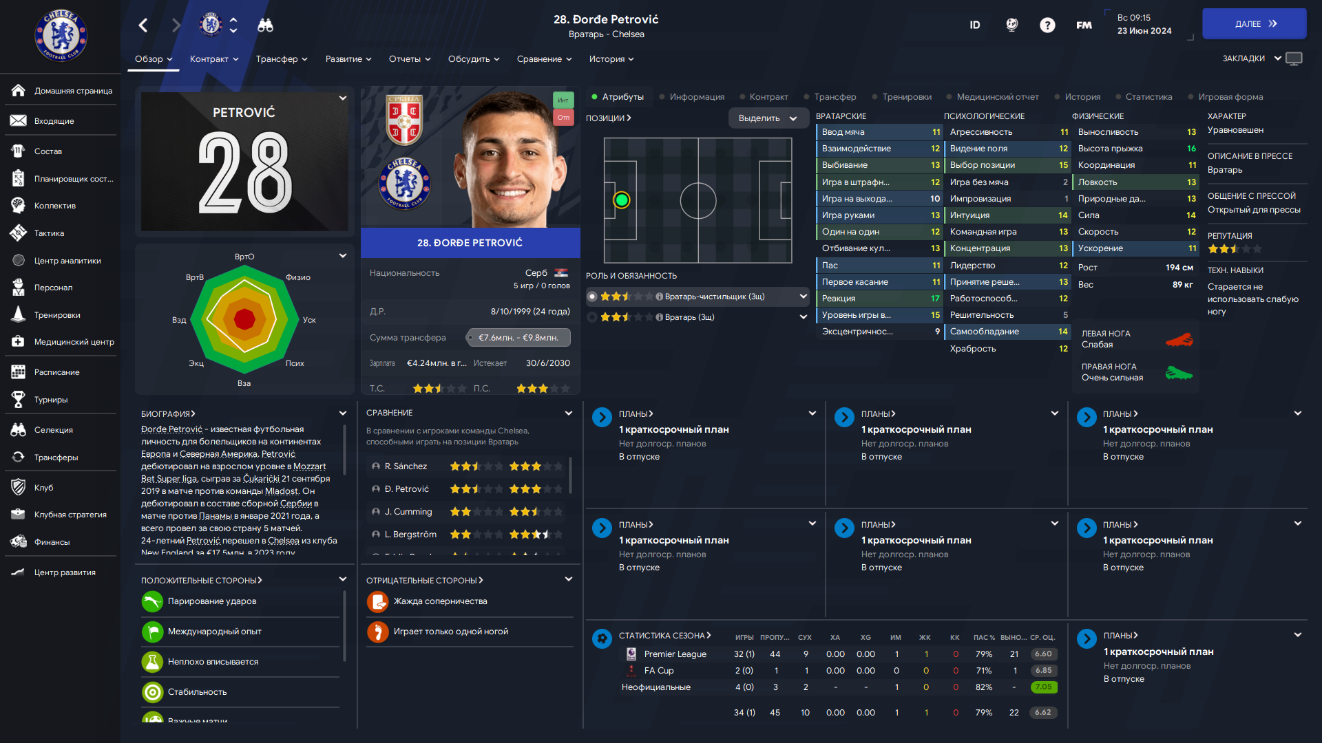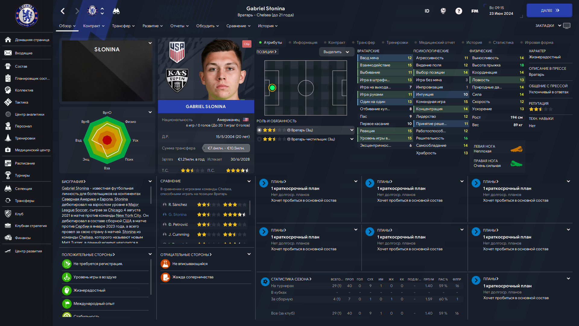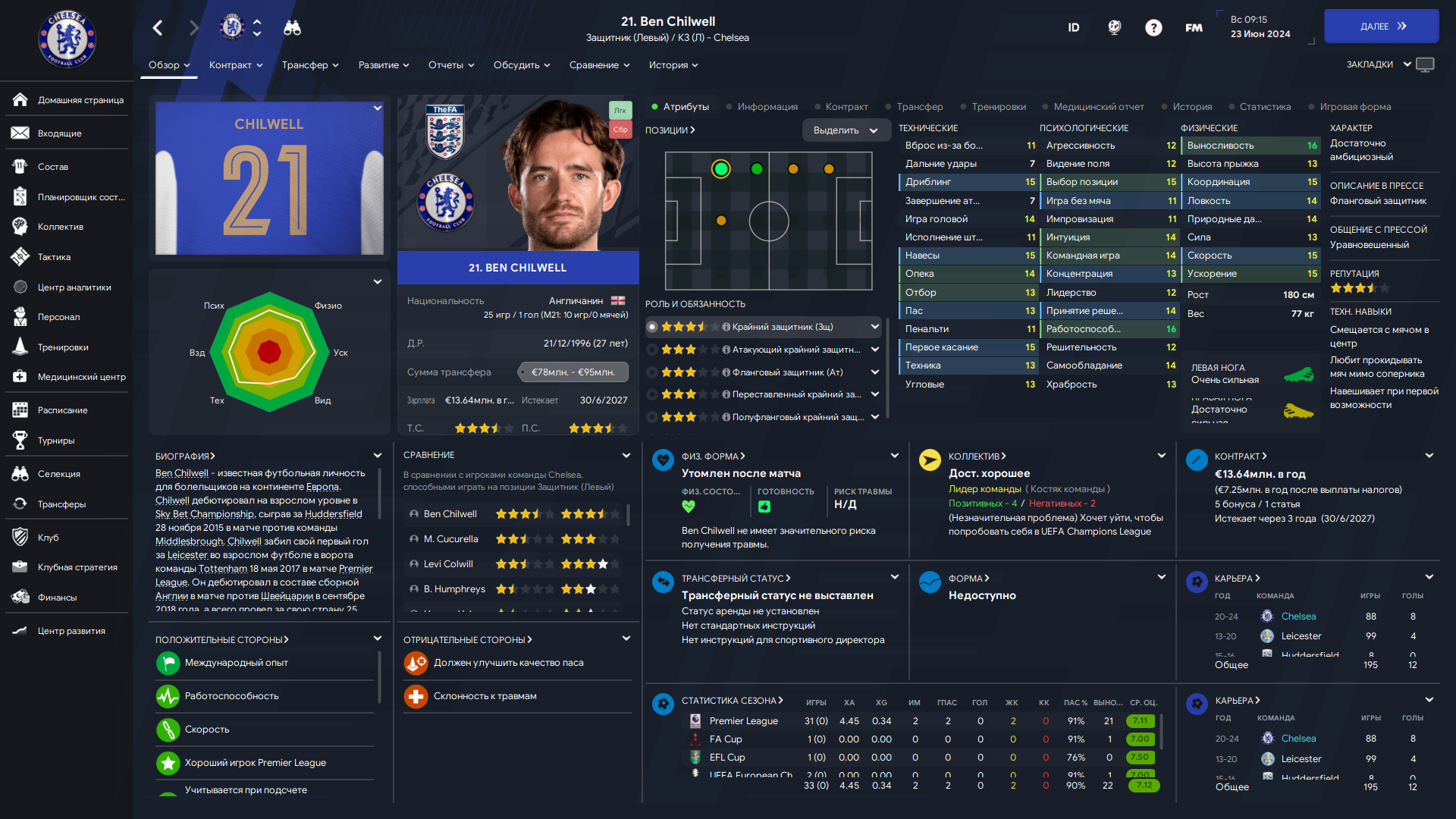 пик 1 первый из трёх мушкетёров, защищающих рамку доблестного Челси. еще больше чем на вратаря эта говяжья морда похож на персонажа какой-нибудь "жвачки" про ментов из прайм-тайма телеканала НТВ. ебало протокольное, тут не попишешь. скиллы - ебала жаба гадюку пока та дремала. из трëх говен числящихся вратарями этот наименьшее говно. в первых матчах ничего выдающегося не показал, в концовке против Лестера привёз гол, пойдя на перехват за пределы штрафной. возможно, ему действительно стоило работать забойщиком на скотобойне или служить матросом на пиратской шхуне. вратарь он посредственный. пик 2 импортозамещенный француз, который даже в свои 33 чего-то может и стоит каких-то денег. в 34-ом наступившем году уже по праву считается ветераном клуба. особо ничего не скажешь. общую картину не портит и на этом спасибо. пик 3 хорватский реген, похожий на Дэна Хукера и которого в зимнее ТО активно пытаются увести Барсуки и захолустный Наполи. как ни странно, болванчик шлëт их нахуй и даже не собирается выслушивать их предложения. по аналогии с Фофана картины не портит. если не съебнëт, то станет частью будущей команды. пик 4 фашист-унивесрал способный закрыть сразу все позиции в защите. двуногий, а посему очень ценный кадр. после того как Джеймс вильнув жопой отъебнул в Аль-Итихад, остался единственным доступным вариантом на правую бровку. учитывая стартовые 38 миллионов и вырученные за трансфер 14, на усиление имеем 44 миллина. не сходится дебит с кредитом? все верно. часть денег перевел в зарплатный фонд, чтобы убрать долги и заиметь хоть какие-то средства на зарплату будущему усилению. возможно ли достойно усилить проблемную позицию в топовом клубе за 44 миллиона? посмотрим