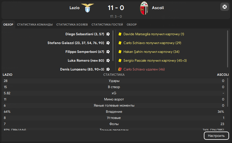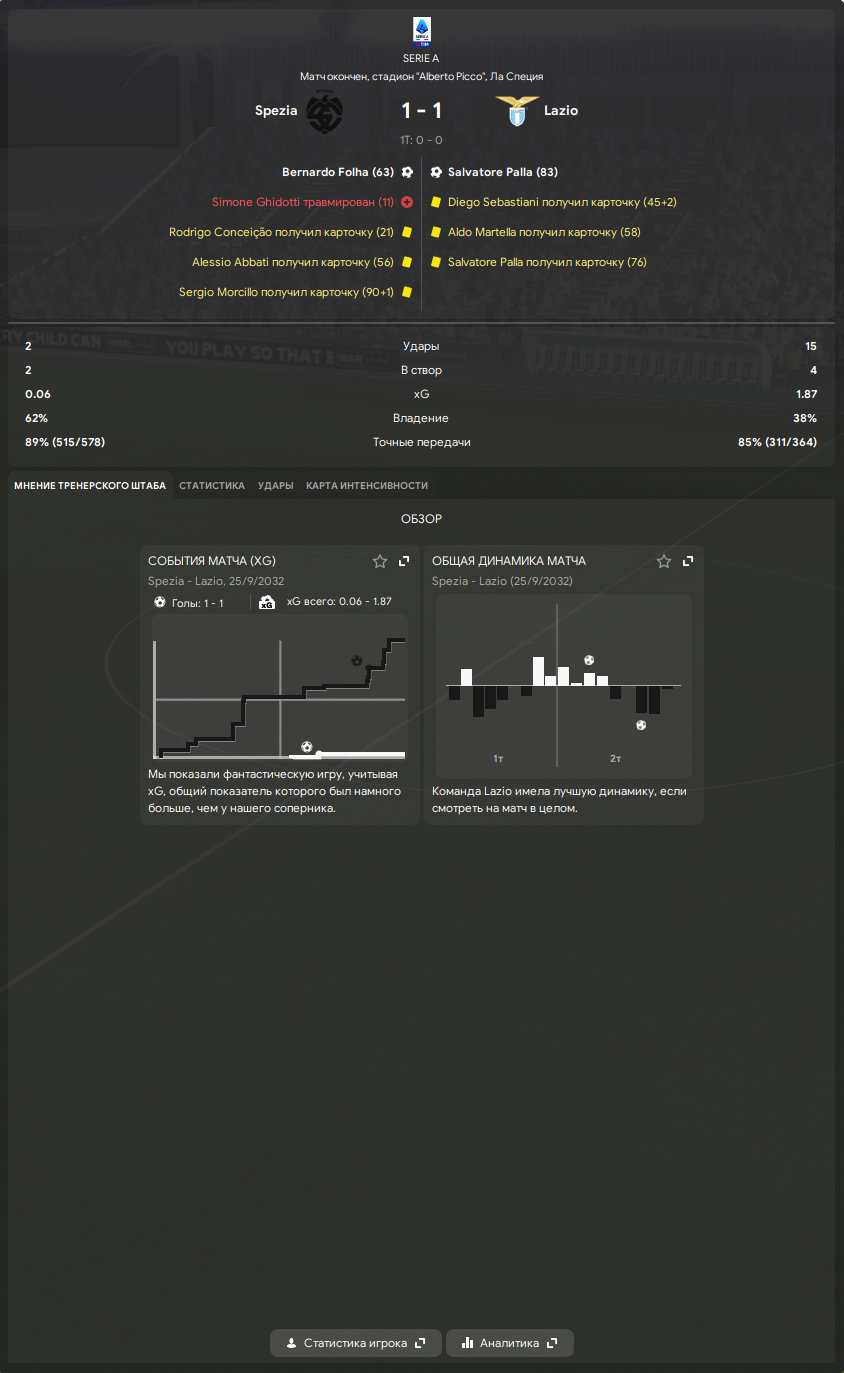 У меня же тут всё по законам фм, да, сложность из патча удалил, но скрипты ебаные куда удалишь? Никуда, регулярно приходится кушать кал в безнадёжных матчах, подобных этому.