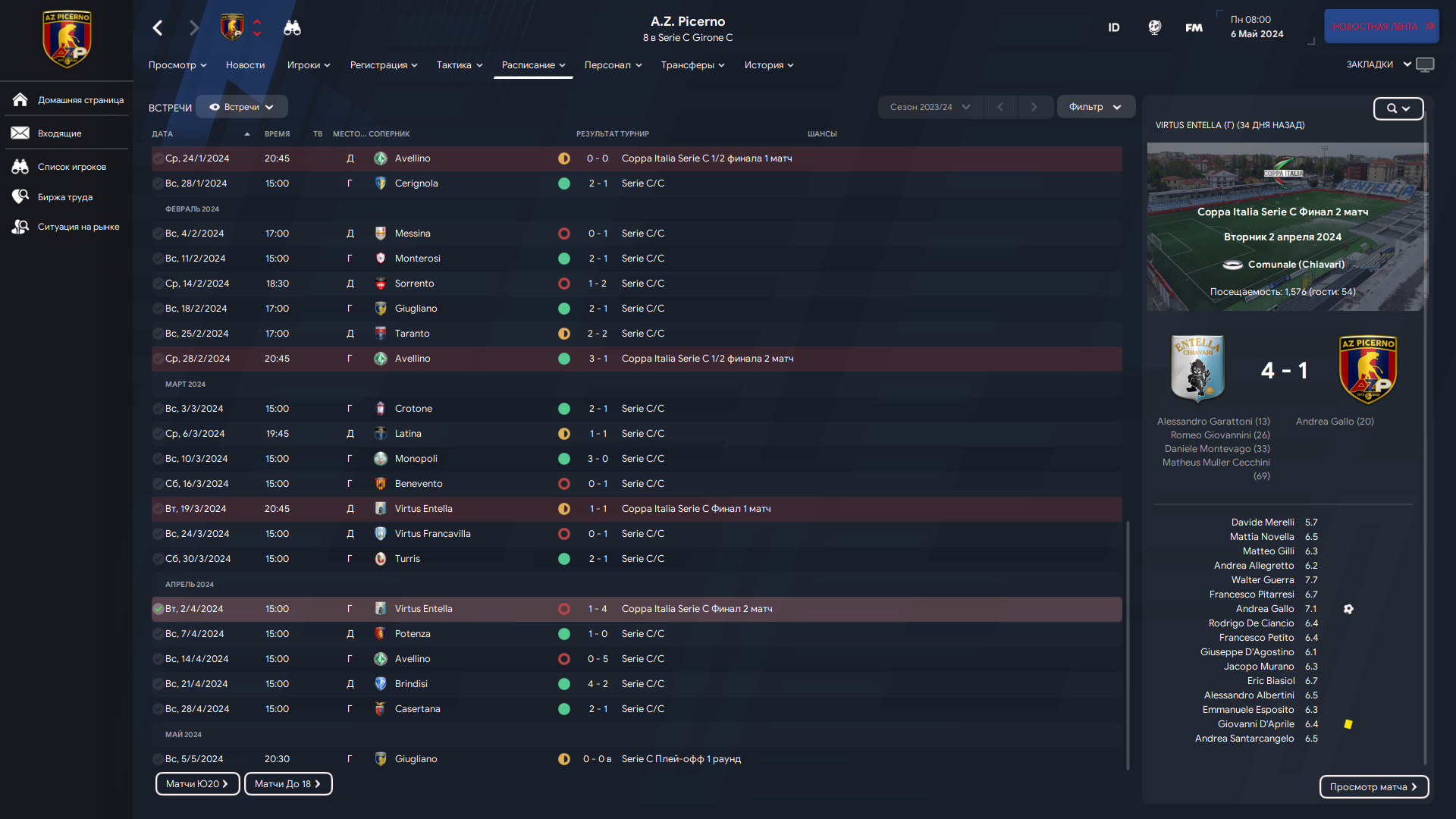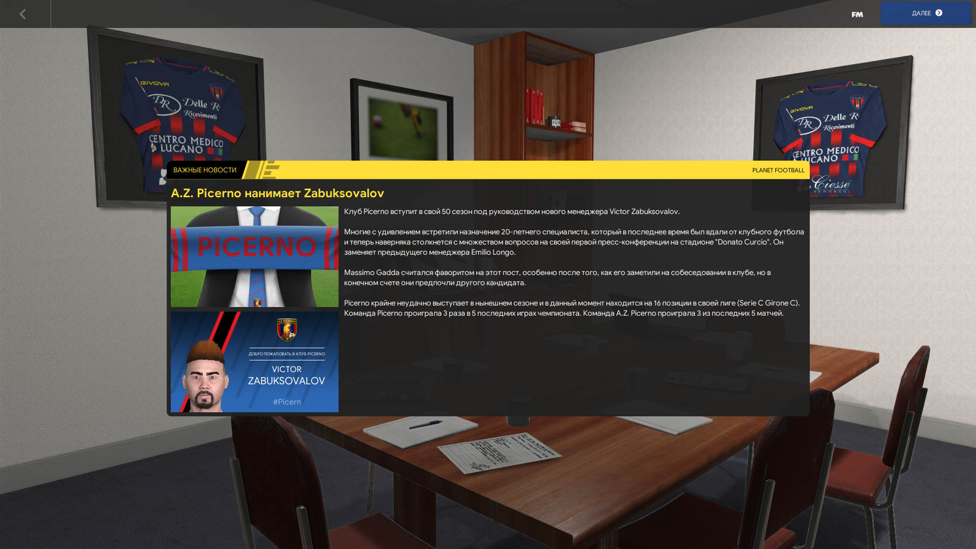 Дальше у нас Пичерно - команда из Серии Ц, сражающаяся за выживание, постараемся сохранить прописку и выпросить ещё одни корочки.