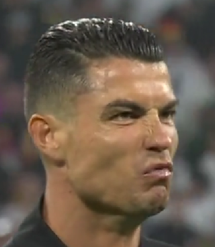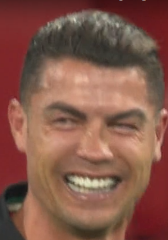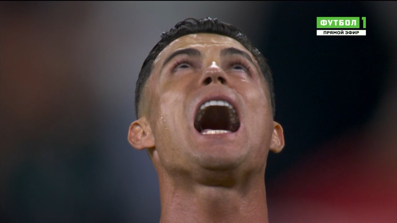 Мда, Роналду какой-то бледный и злой, он вроде уже устал во время разминки, может из-за дождя. Наверное его сейчас заменят