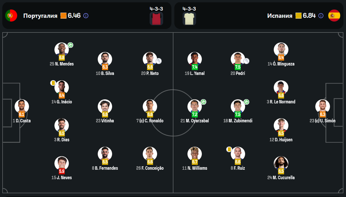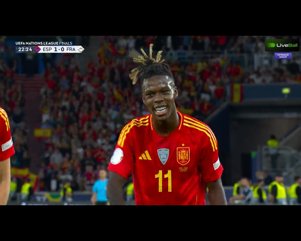 Французы неприятненько прощупывают Симона - может и залететь. Да и вряд ли установка была на "сдержим, не пропустим", проще сразу рассчитывать на перестрелку 5:4. А с таким подкатом Ямаль мог и красную получить