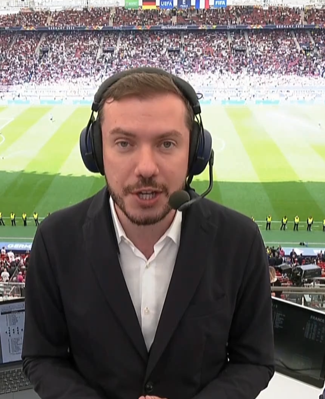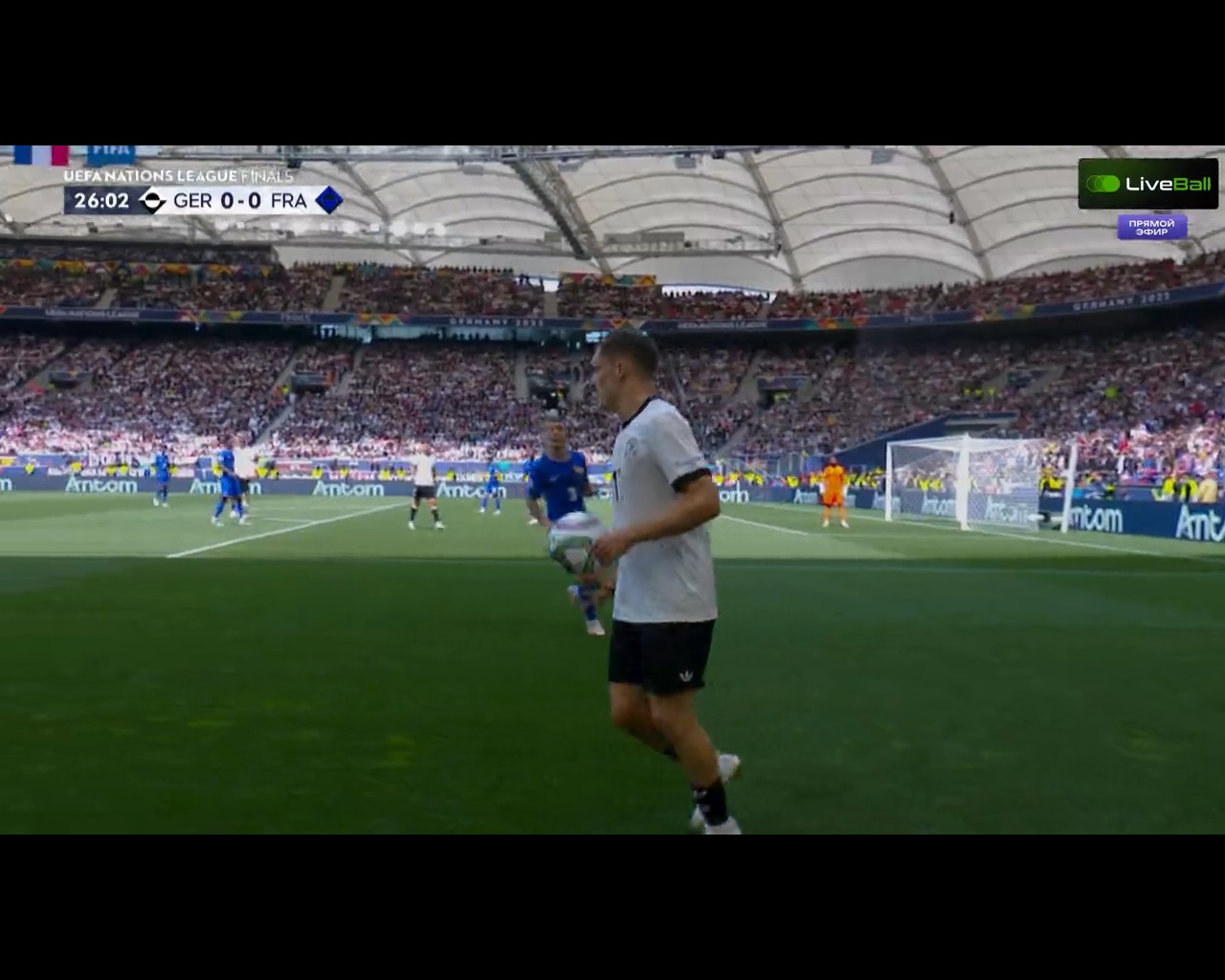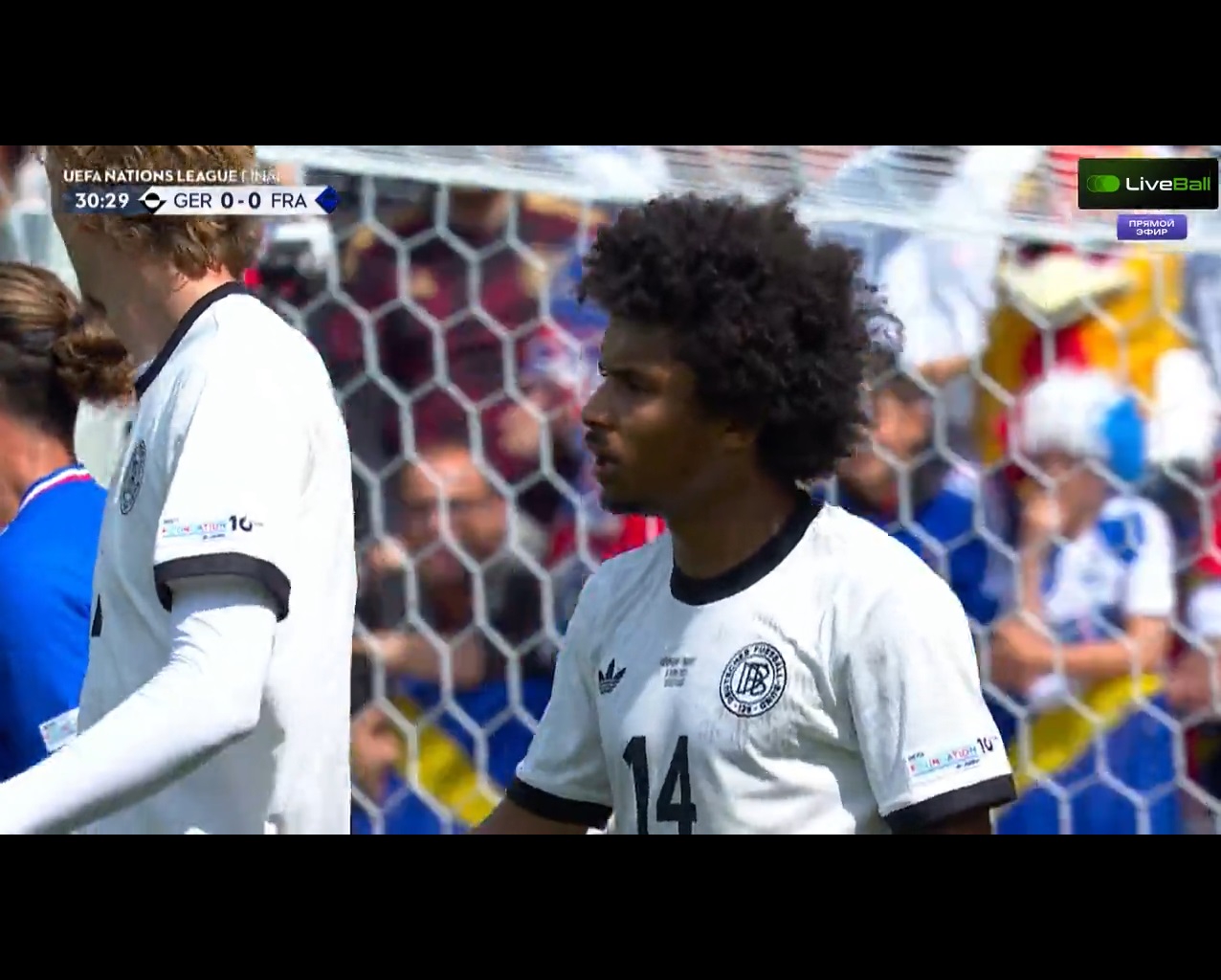Немцы транжирят, но наверное Вальдемар и Адейеми и не должны забивать всё. А вот у французов что-то совсем нет полузащиты. Пока что это видно даже такому аутистку как я. У них как бы две крайние позиции - либо глубоко в обороне, прям в своей штрафной, либо ближе к чужой штрафной. Вон, даже Мбаппе опустился чуть ли не в опорную, чтобы помочь разыграть У французов ещё форма интересная. Такой прям насыщенный цвет, как живой, такой гиперсиний Пока писал Рабьо напомнил, что он ещё жив. Ладно, смотрим