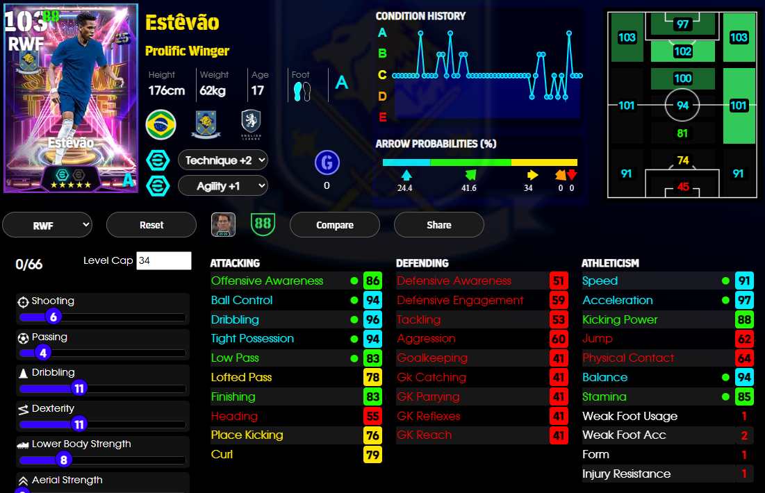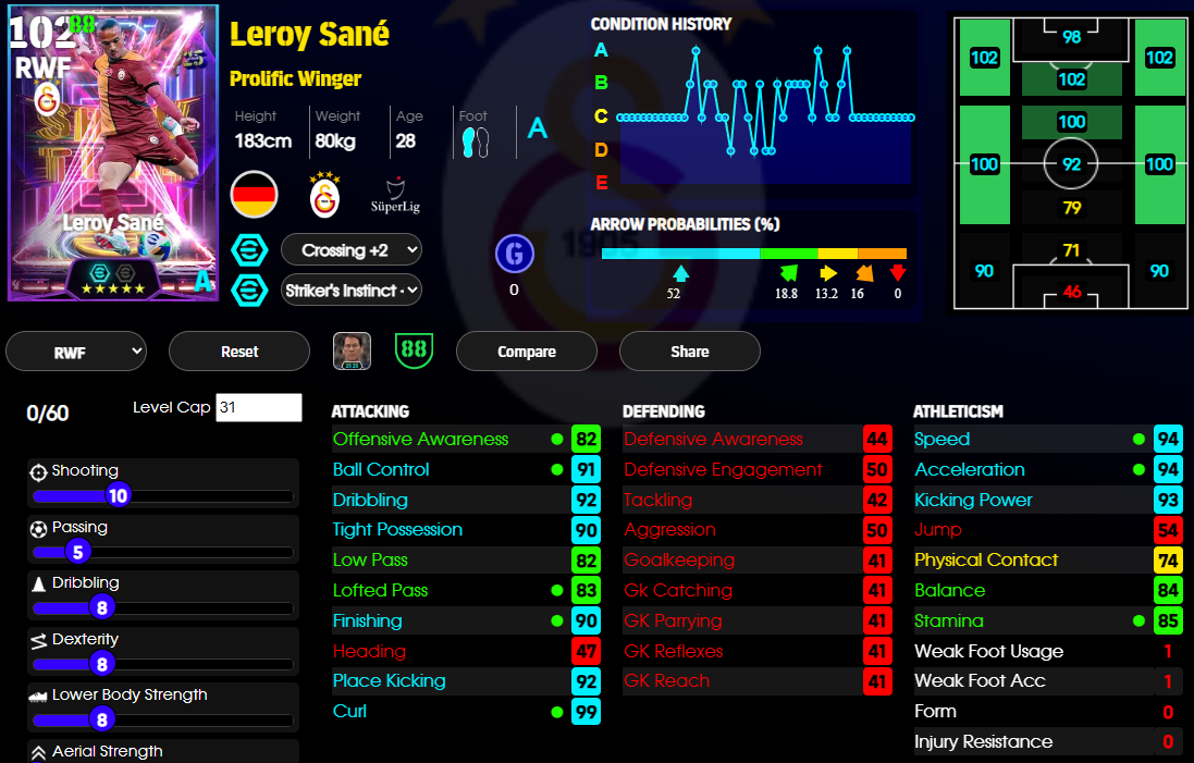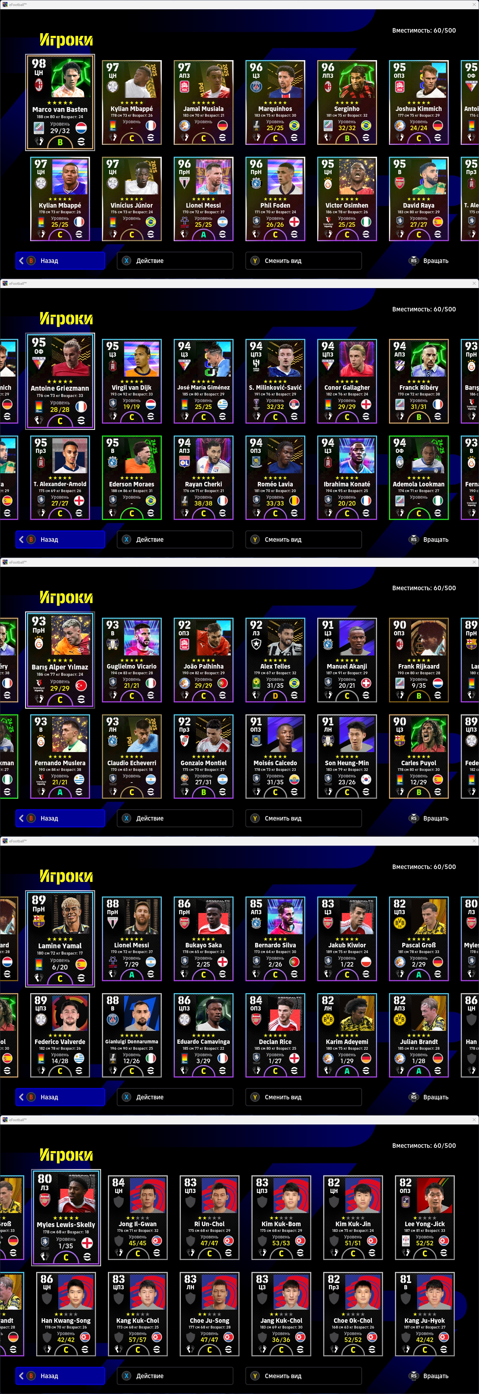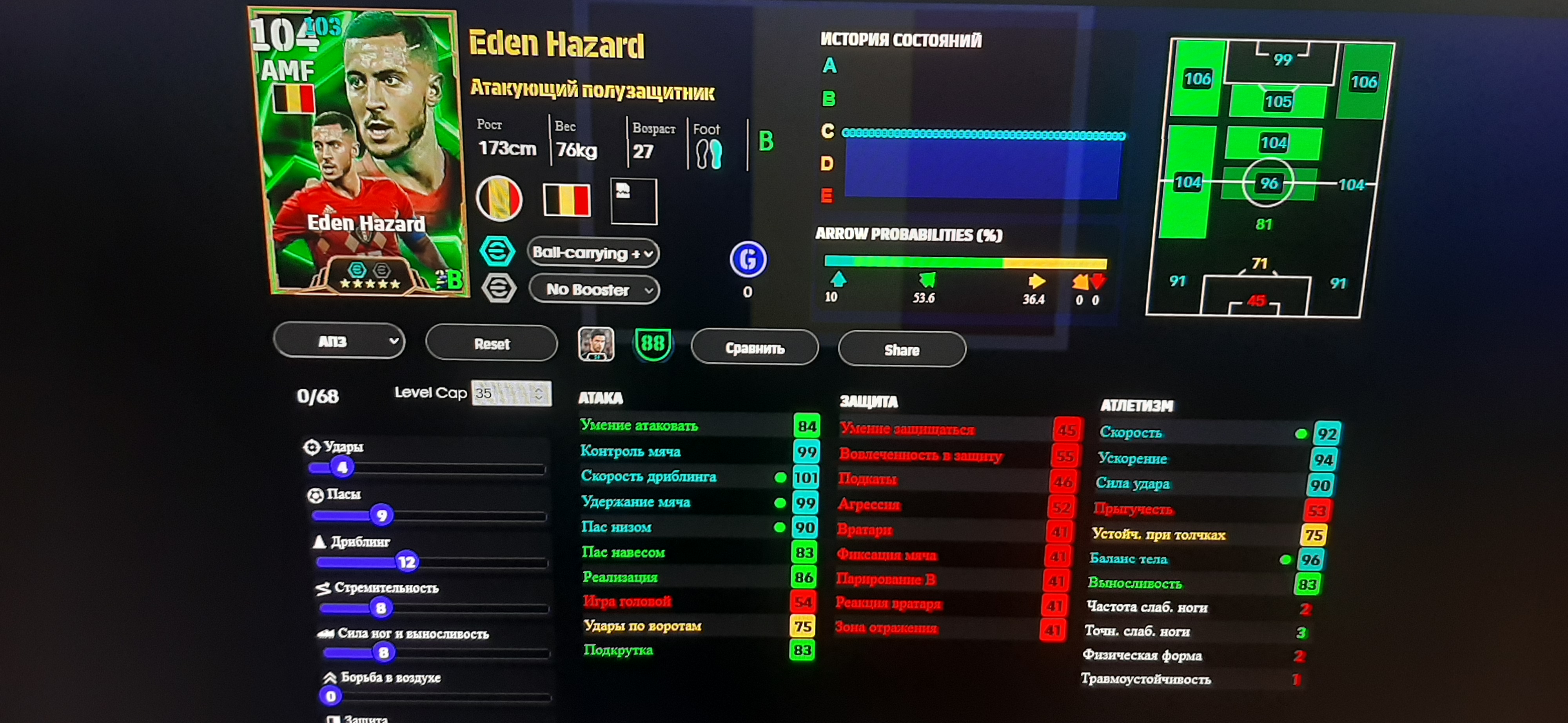 >>3374525 По 100 это эпики, у меня таких нету, а эти 95 - 96, до сотки добивает тренер, все разные, начиная от модельки, рост и комплекция у всех разная же и заканчивая кучей статов и навыков, так же каждую неделю выходит оперативное обновление и игроки в зависимости от того как себя проявили получают физ форму от A до D В хорошей форме скорее всего на матч выйдет со стрелкой вверх, там еще статы увеличены будут, а в плохой форме выше вероятность что стрелка вниз будет, там статы уменьшаются, такая вот система, заставляет составы собирать и думать во время матча как играть а не просто собрать команду ебак и бегать ими ничего не меняя.