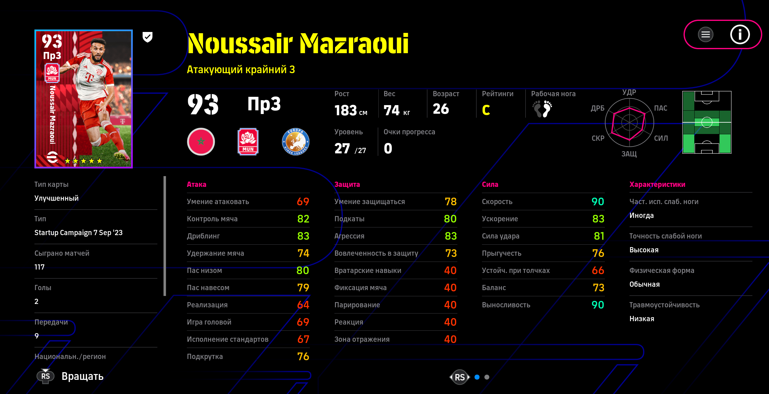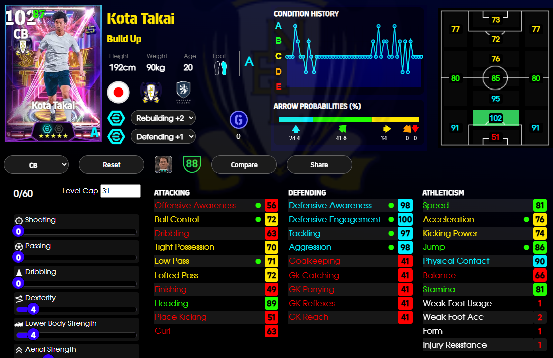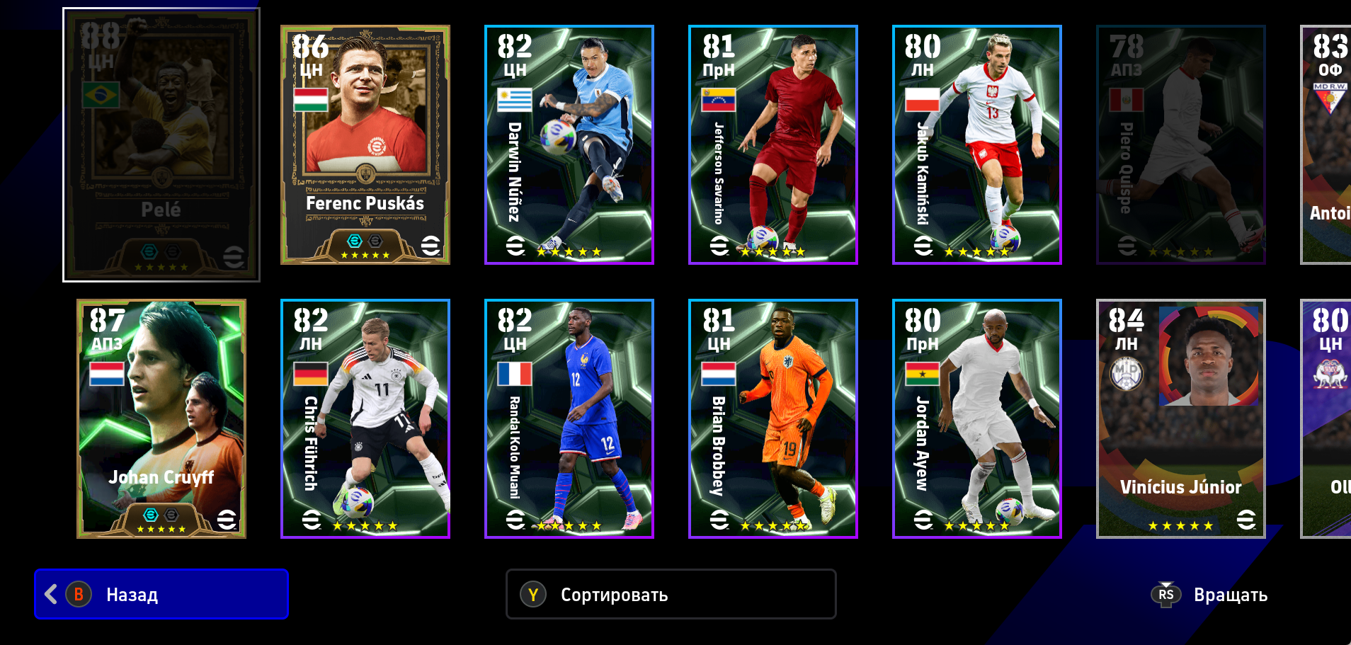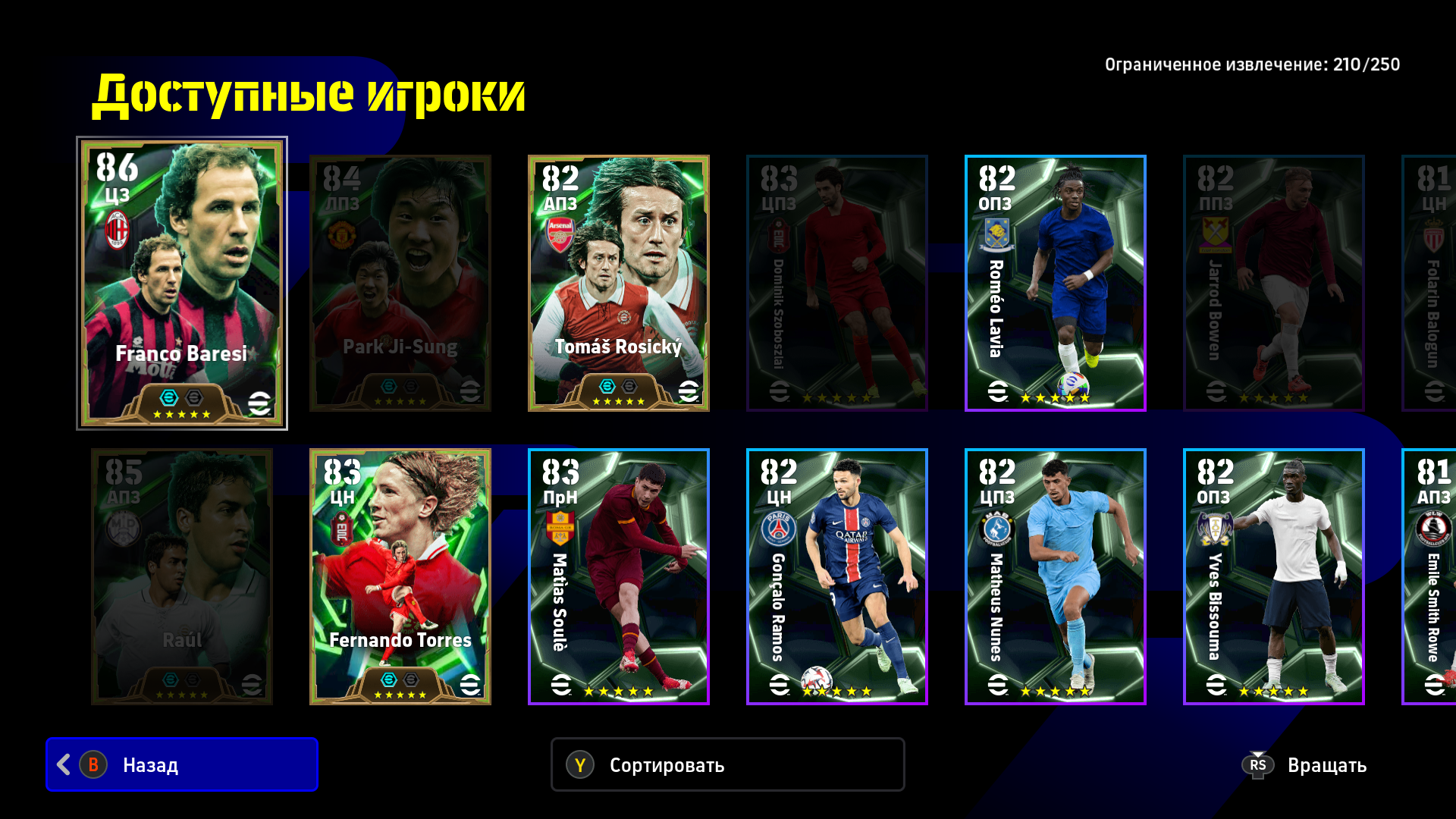 >>3374525 По 100 это эпики, у меня таких нету, а эти 95 - 96, до сотки добивает тренер, все разные, начиная от модельки, рост и комплекция у всех разная же и заканчивая кучей статов и навыков, так же каждую неделю выходит оперативное обновление и игроки в зависимости от того как себя проявили получают физ форму от A до D В хорошей форме скорее всего на матч выйдет со стрелкой вверх, там еще статы увеличены будут, а в плохой форме выше вероятность что стрелка вниз будет, там статы уменьшаются, такая вот система, заставляет составы собирать и думать во время матча как играть а не просто собрать команду ебак и бегать ими ничего не меняя.