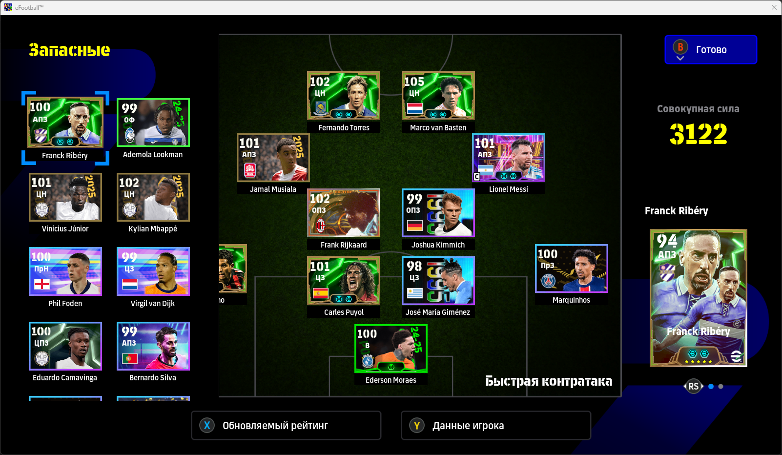 Салах/Рибери Салах всегда бодрячком, но у меня крен на левый фланг, Салаху всегда тяжело. Но он не унывает, что может решить - решает. Рибери - пиздец трактор. Если я не могу вообще пробраться в штрафную - надо выпускать Рибери, он и прессингует за троих, и вьебать может, и обыграть так, что соп начинает стремиться.