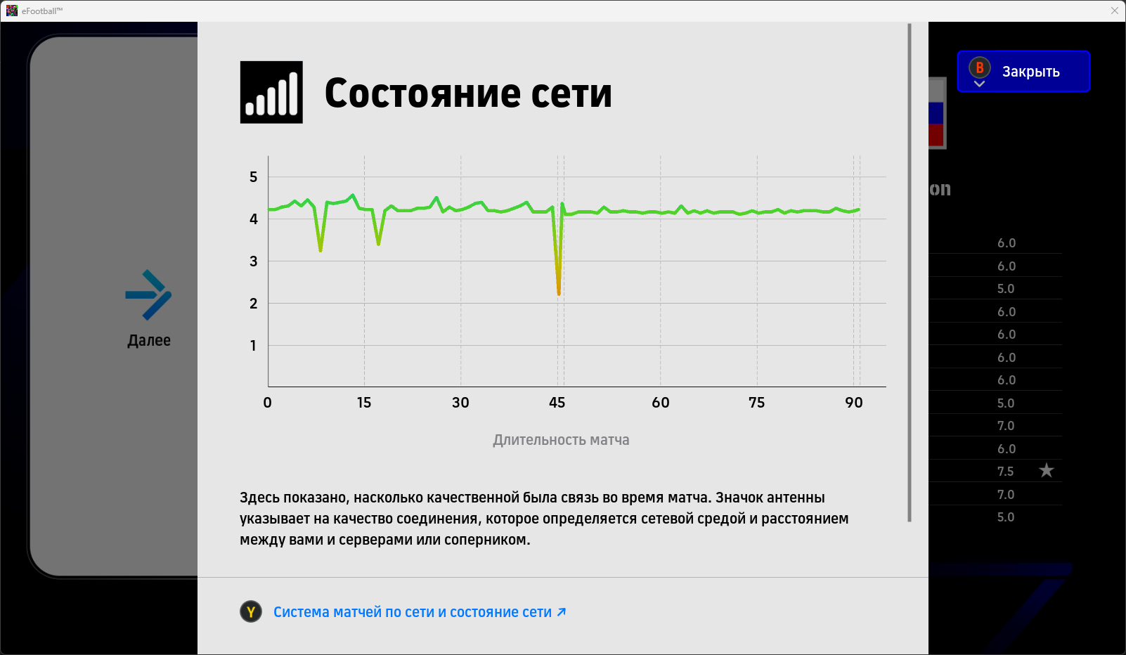 4) Из положительного отмечу, что коннект стал в среднем лучше, это очень радует. Матчей с околосекундной задержкой почти не осталось, поэтому можно спокойно играть с 250-300 передачами за матч без выносок от своих ворот.