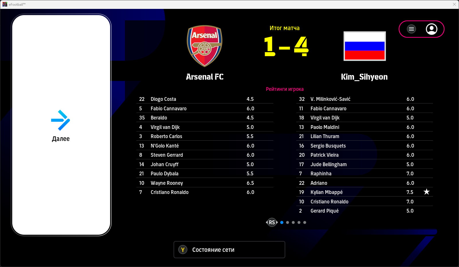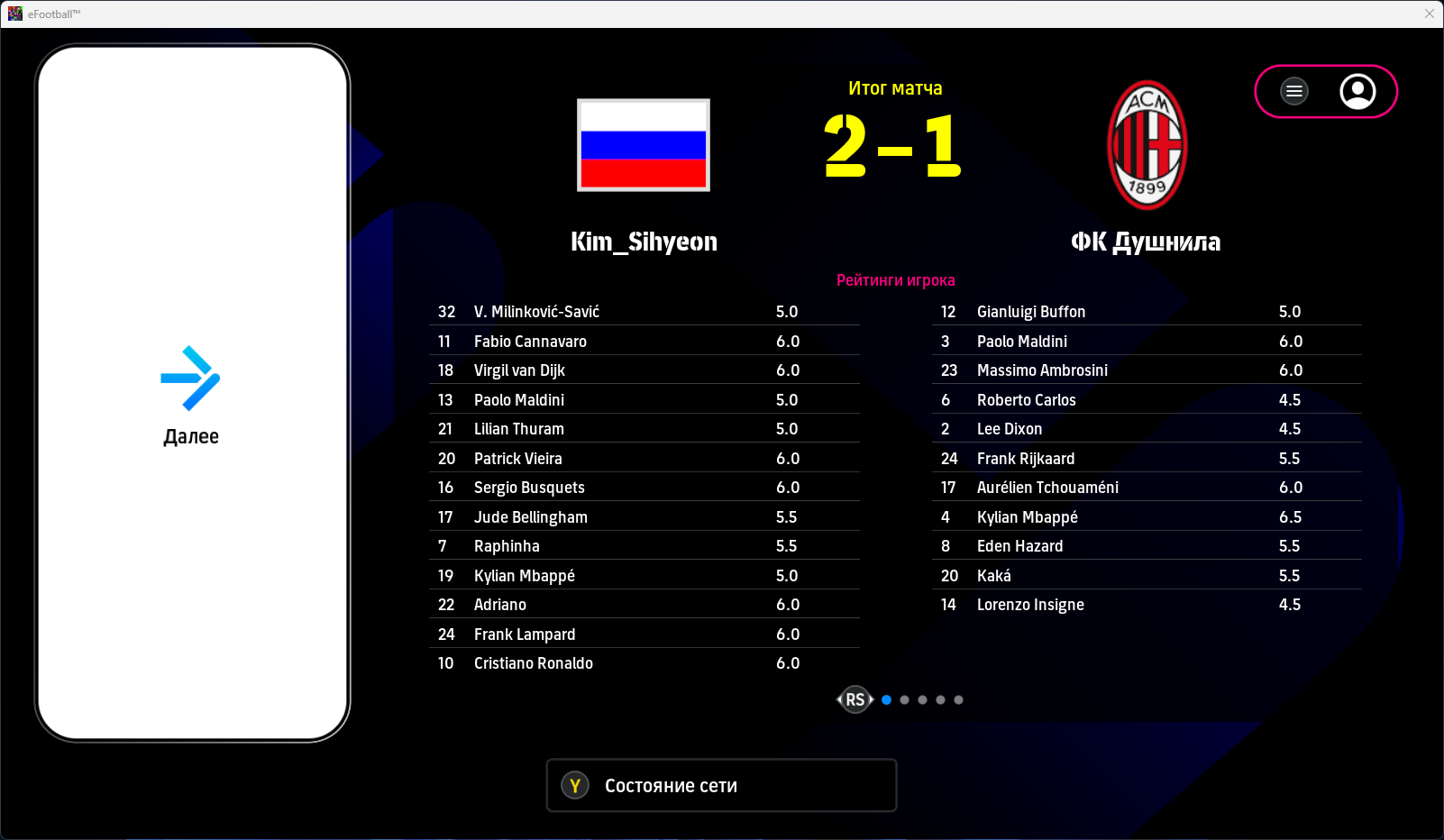3) Из-за обновления набежали дурачки-обиженки + читеры. пример на скрине. Человек использовал манипуляции с коннектом, благодаря чему открыл счет в матче и не скипал дебильное празднование у статуи козла. Но играть он не умел, поэтому получил в ответ целую охапку голов, хотя мог и больше огрести. В конце матча он вышел в меню замен и настроек и сидел там до окончания таймера просто ради того, чтобы затянуть матч и испортить мне настроение. Не хочу разводить срачи, но вы сами видите, какой там родной язык. И это только один пример.