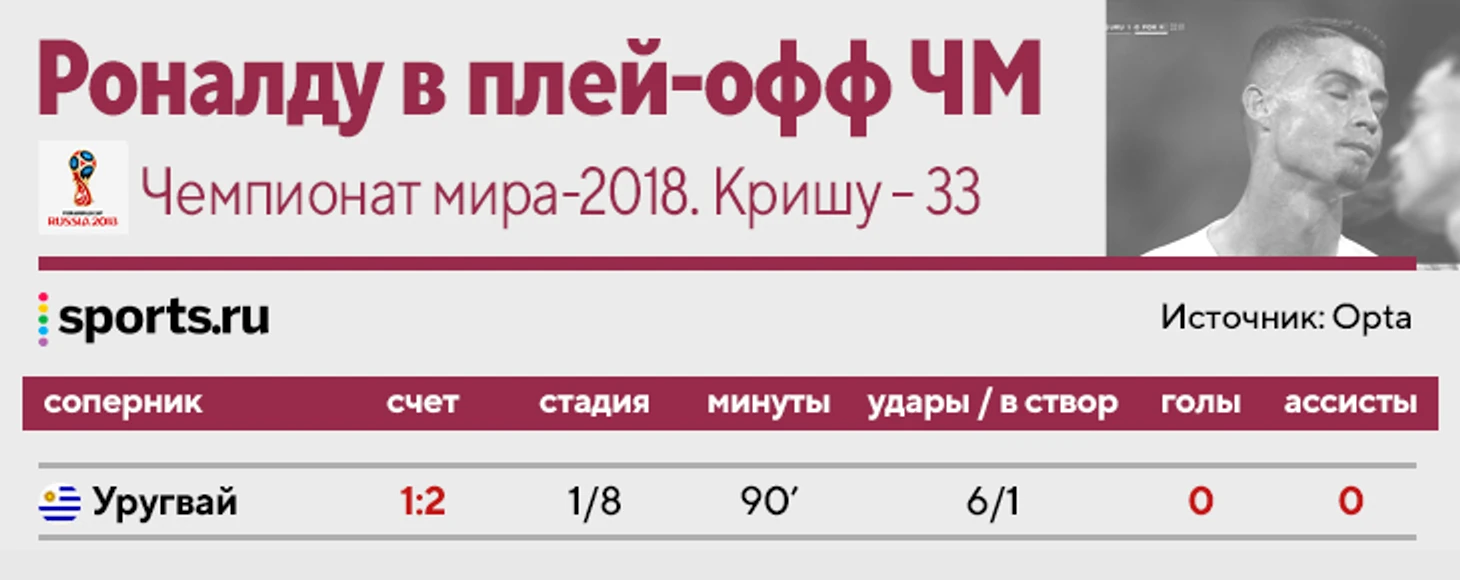 Роналду никогда не забивал в плей-офф ЧМ. За 8 матчей, 548 минут и 27 ударов