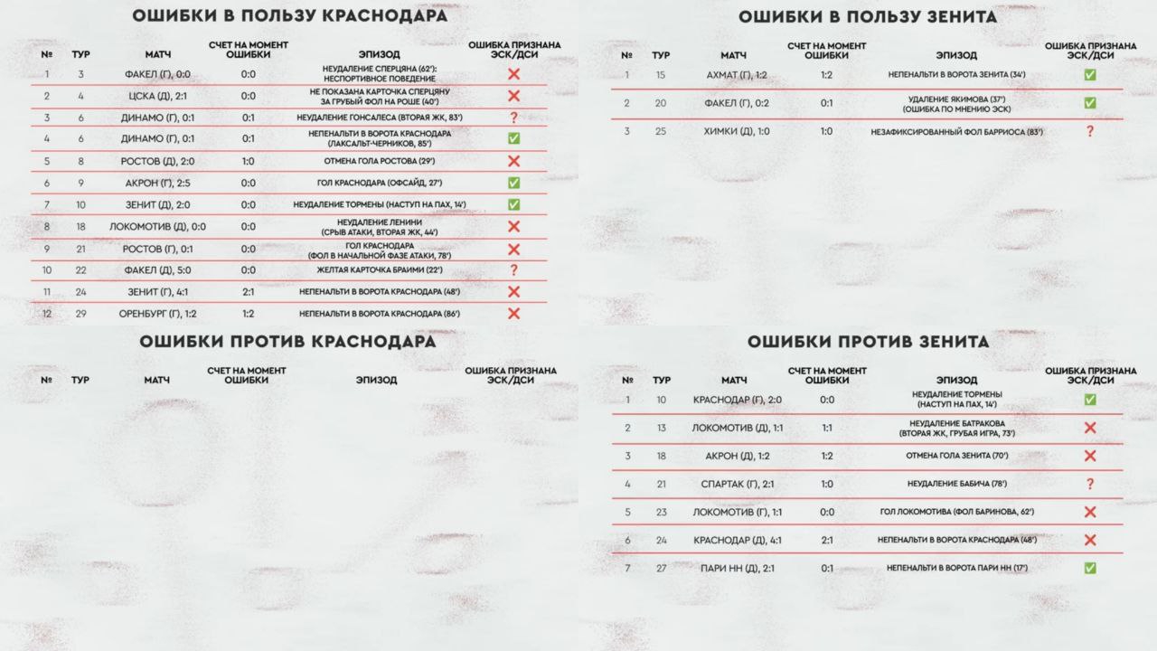 По данным Sport Baza, от работы отстранены работавшие на ВАР Артем Любимов и Константин Аверьянов. Также на сбор не был вызван и Богдан Головко, задержанный вчера вечером. При этом, главный судья матча Инал Танашев отстранен не был.