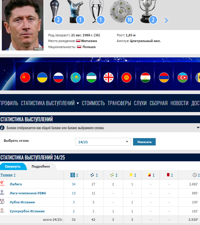 >>3392105 >чтобы поставить на поток победы в ЛЧ и в чемпионате Тогда почему у него за 30 лет карьеры всего 6 побед в чемпионатах, две из которых это ПСЖ и Бавария? Странный поток.