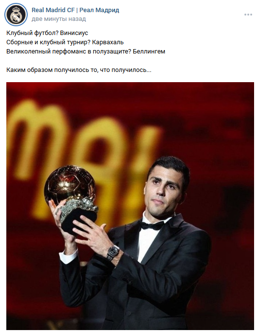 >>3390609 Ну ЗМ же. И как вдобавок вся петушня мадридская включила обиженных девок и церемонию проигнорила. Думаю, что Родри впишется туда как влитой, хотелось бы посмотреть на такой цирк.