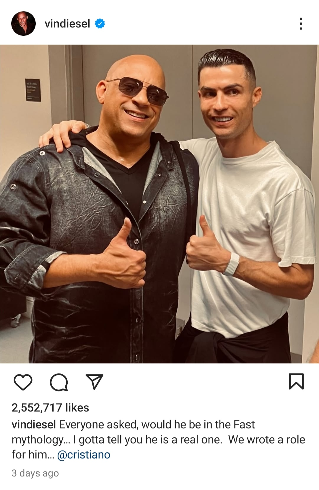«Вчера я обрел нового друга. Благодарен за любовь и поддержку каждый день и надеюсь, что каждый сможет следовать за своей мечтой», — написал Роналду в подписи к ролику.