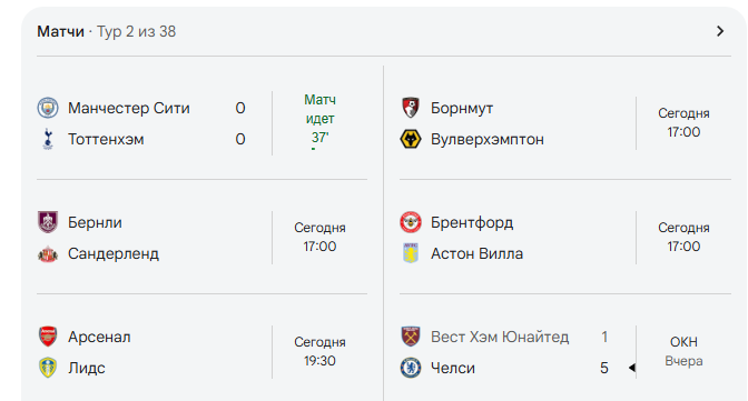 Чему нас научил 2й тур АПЛ Свистки сразу и массово ринулись принимать самые идиотские решения. И сейчас речь даже не про Юнайтед. Позорище какое! Раньше такими пенальти/голами судьи тащили Селян к чашкам, а теперь — из зоны вылета. Побеждает всеобщий любимец Тейлор. Показал Зельсу желтую карту за затяжку времени на 52й минуте, когда Форест проигрывал 0-1. Футбол — это простая игра, где Ман Сити постоянно проигрывают Тотнему. Но есть и другой вариант: Футбол — это сложная игра, в которой Франк всегда побеждает Гвардиолу. И теперь Романо сочиняет, что именно Сити сильнее всех любят Доннарумму, но выпрашивают у газовиков скидку. Грэм Поттер — не худший тренер в АПЛ-овской истории Железяк. Легендарный Аврам Грант выбил с Молотами 0,89 очка за игру, а у Поттера - полновесная единичка (но этом сезоне пока 0) Грилиш: первый старт и 2-е голевые передачи. "Джек здесь, чтобы голы забивали другие" — Пеп, вне всяких сомнений, имел ввиду Эвертон.