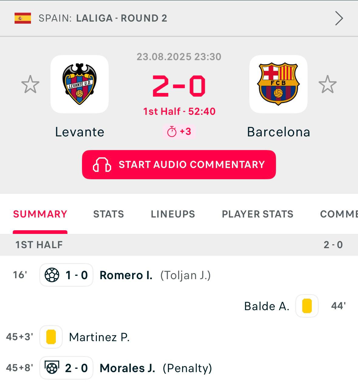 У леванте контратака - гол, контратака - пенальти, у Барсы же нихрена не получается комбинировать в этом водоёме, в то время как у хозяев всё отлично - ебашь вперёд и беги.