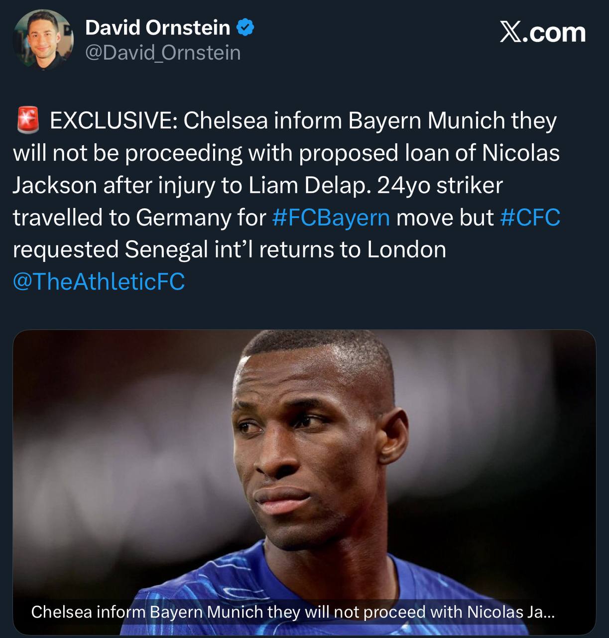 >>3399195 Вообще за 15 лямов отдавали, но из-за травмы Делапа остановили сделку, ведь контракт еще не был подписан. Но затем крыса джаксон лтказался улетать обратно и Челси предложил Баварии тогда выкупать джаксона чтобы мы смогли купить другого форварда. Бавария жмотится и похоже это чудо-юдо все же вернется к нам, несмотря на этот бойкот.