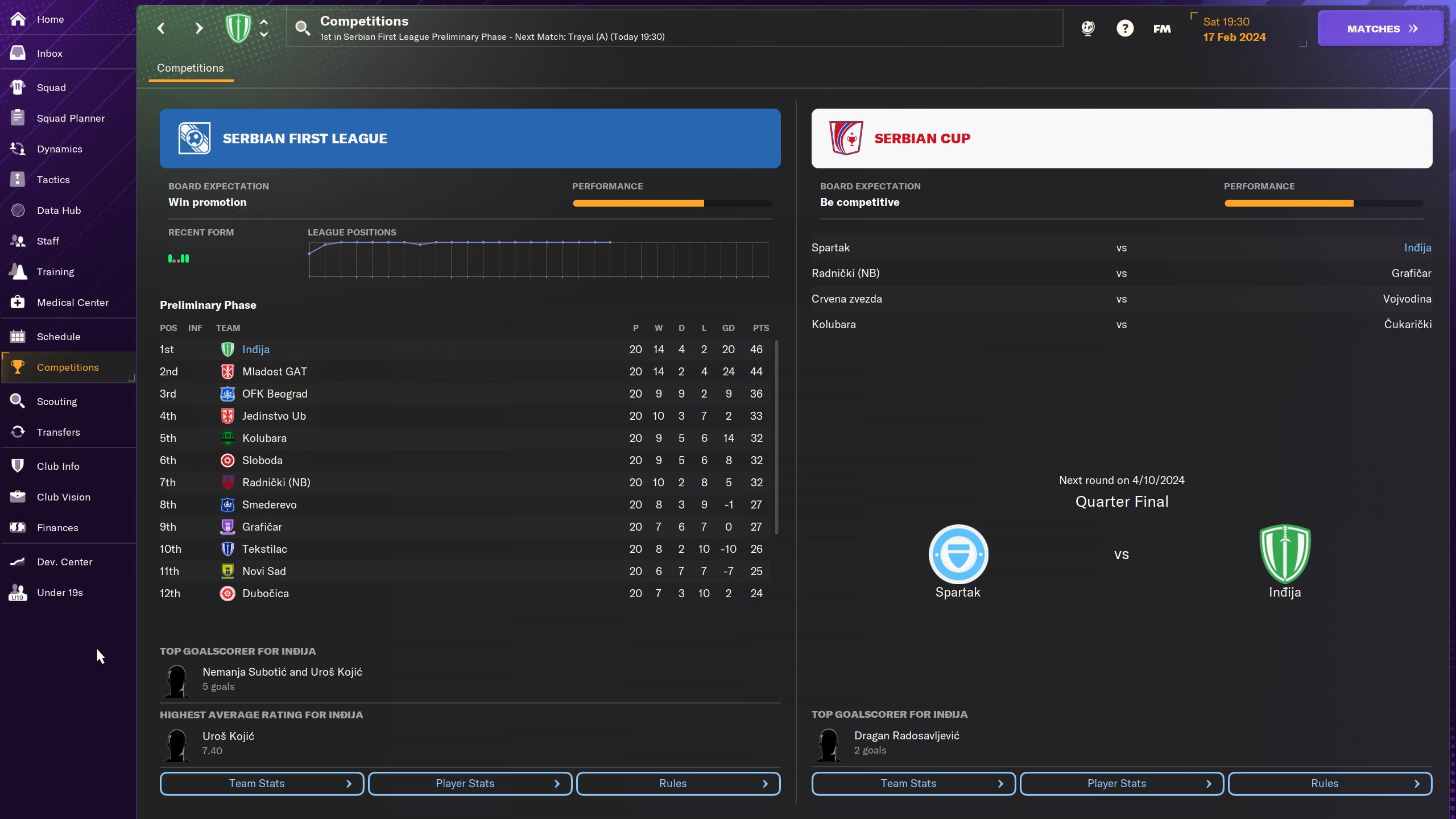 В прошлой игре играл за Новый Сад и я еле-еле держался в середине списка и когда я не прошёл какую-то квалификацию, то меня кикнули вообще.