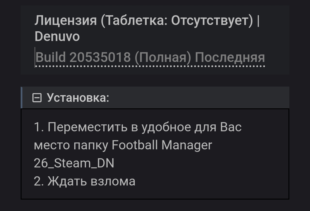 Так. Я так понимаю в тред всё таки заглядывает люд. Тогда сегодня ИНТЕРЕСНОЕ и как будто бы даже КРУТОЕ! https://www.footballmanager.com/fm26/features/possession-out-possession-fm26s-new-tactical-evolution Прикиньте. Чё теперь можно делать. Ахуй. Вот это по настоящему надо будет думать. Главное только чтоб движок всё смог просчитать и учитывать. Да. Слушайте. Ну тут не то что из 5 в 4 див не подняться. Тут бы в 7 нахуй не вылететь с такими то настройками. Предлагаю в системных требованиях в минималках прописать двузначный айку.