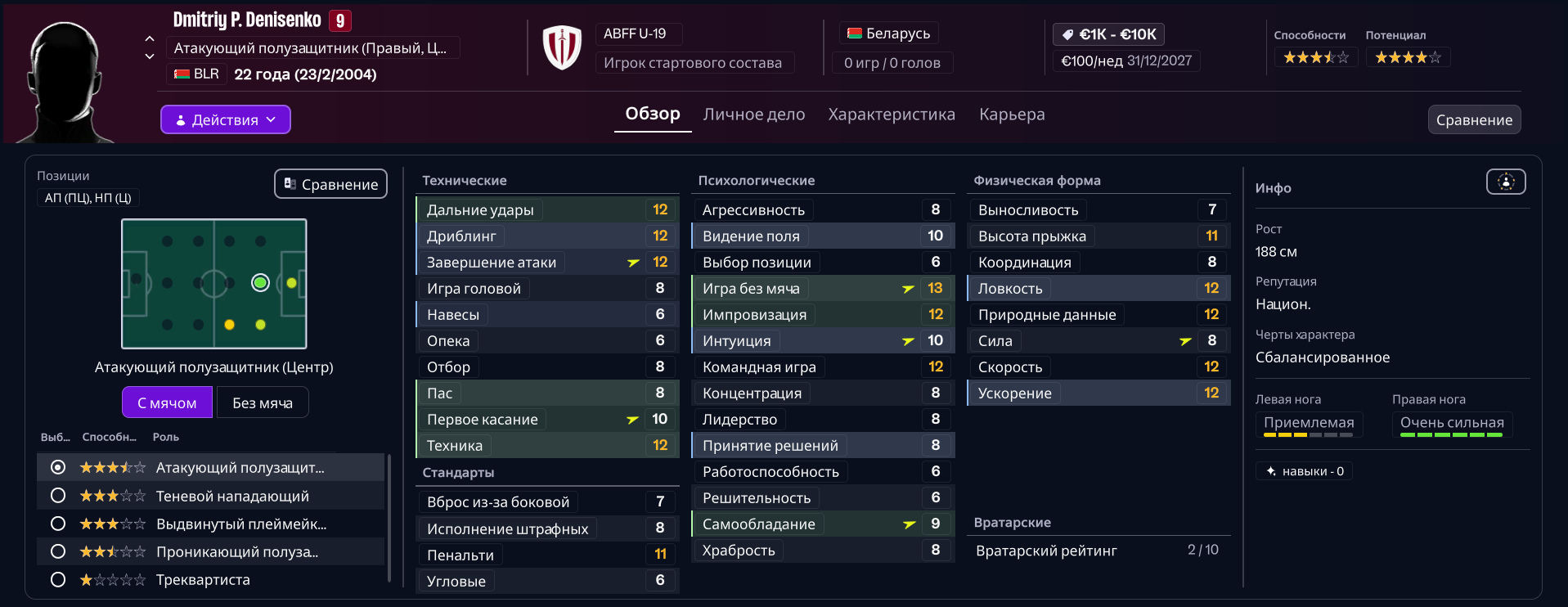 Кстати, вот тут я не совсем понимаю. Если я вижу что игрок часто дает не точные передачи и теряется мяч из-за этого, при этом настрой и форма у него отличная, роль ему подходит около идеально, тактику он тоже знает отлично и тд, это дело в характеристиках? Если да, то в каких именно? По логике, должно влиять виденье поля и пас, возможно еще техника. Так ли это?