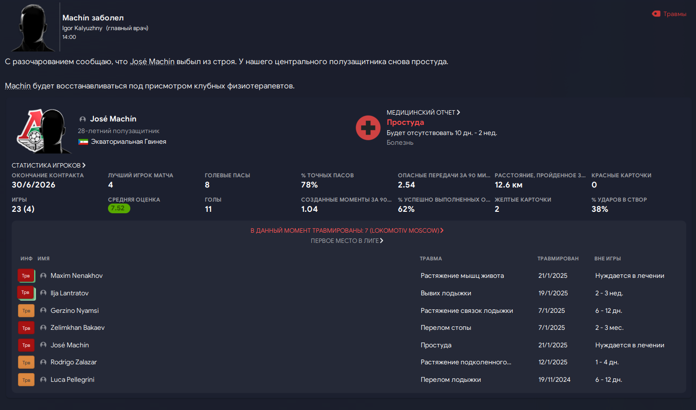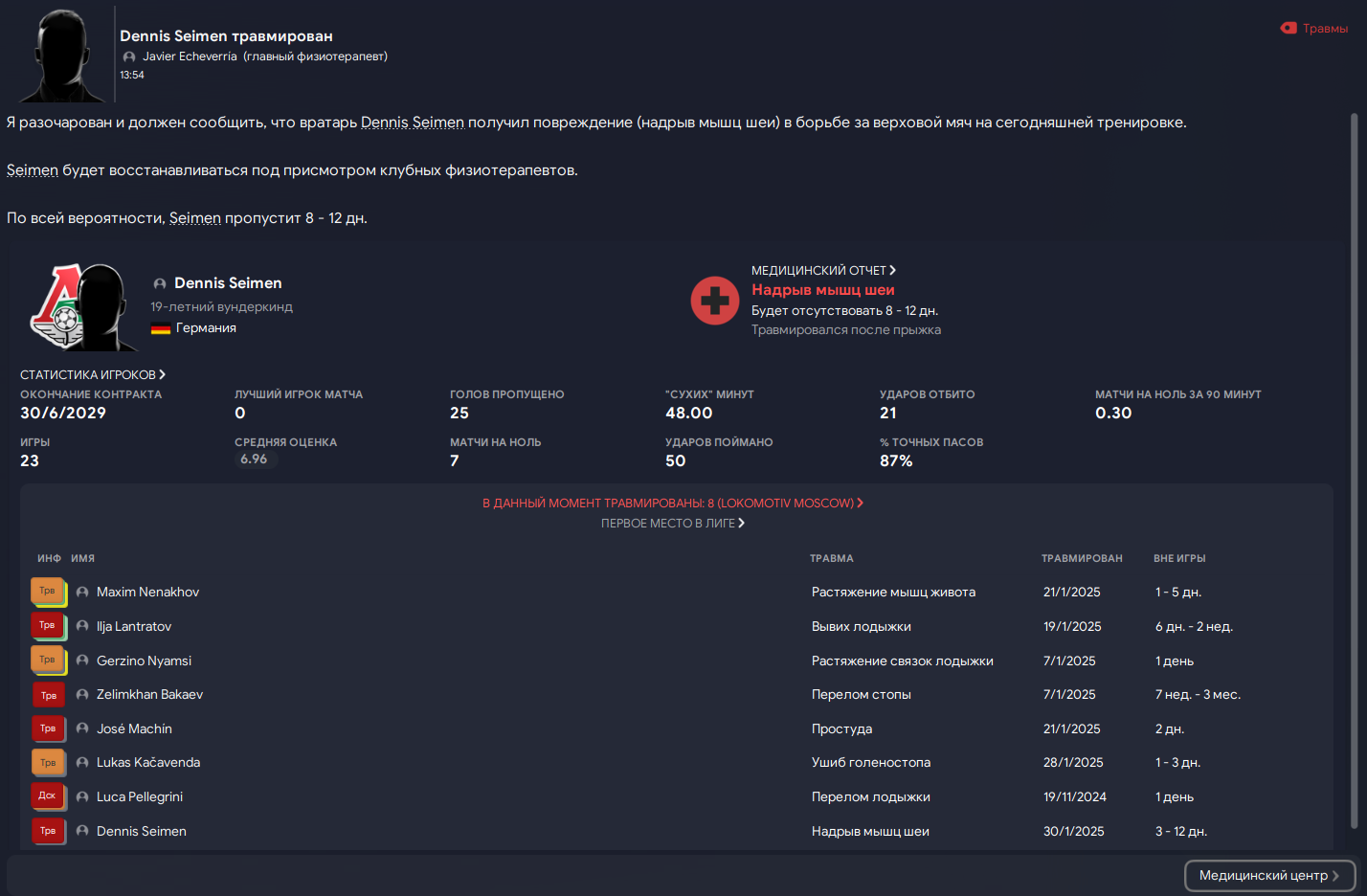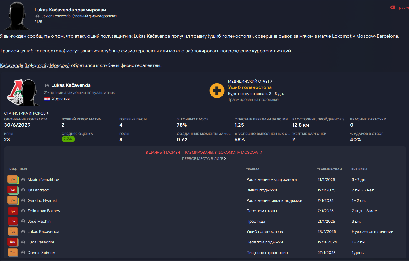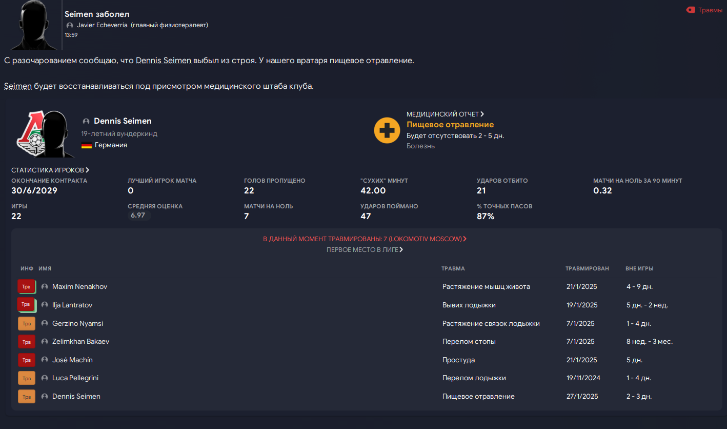 Каждый раз. Перед важными играми в ЛЧ вот такая ситуация. Выбывают по 2-3 человека за день. У меня уже нет слов. Тренерский штаб и физиотерапевты одни из лучших в лиге, у других команд такого пиздеца не бывает. Только у меня..