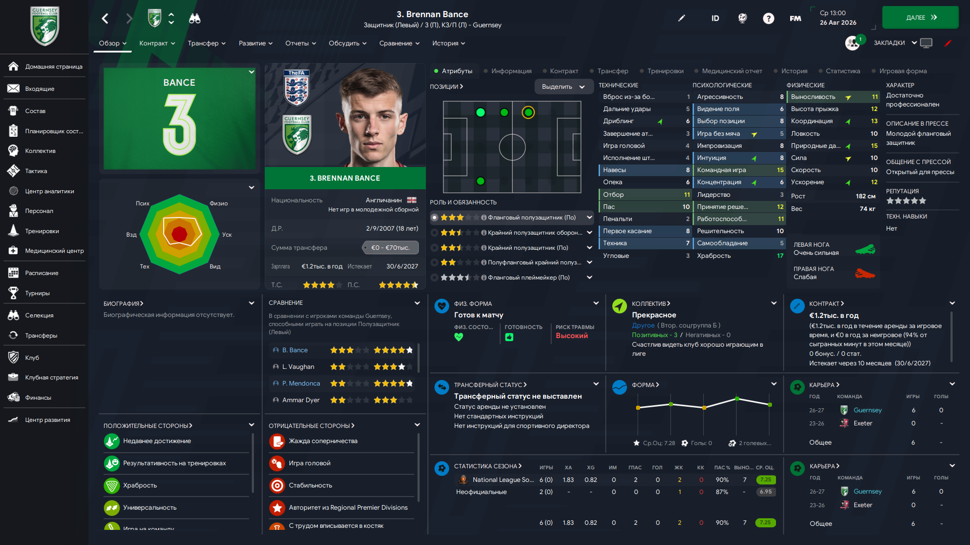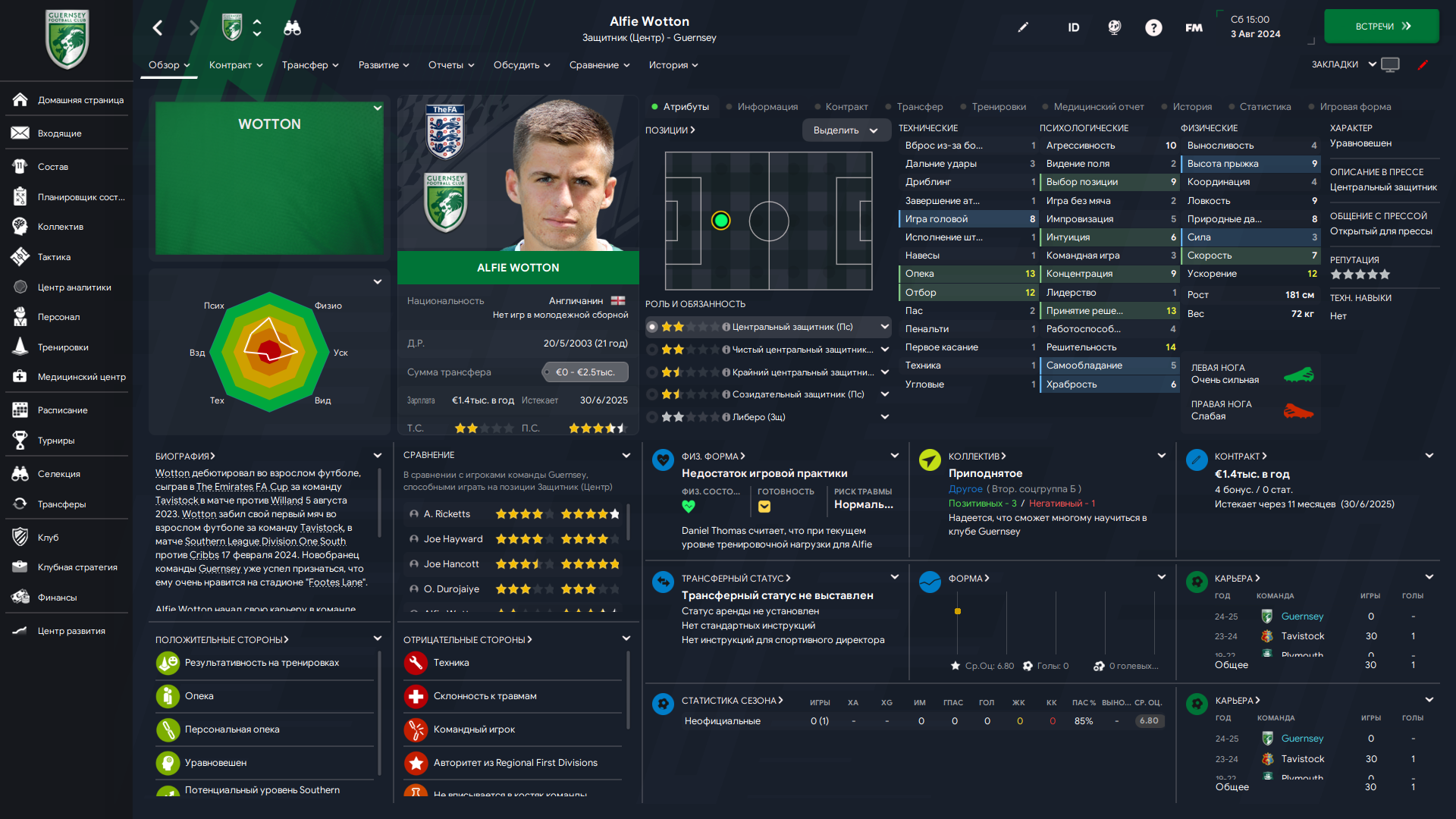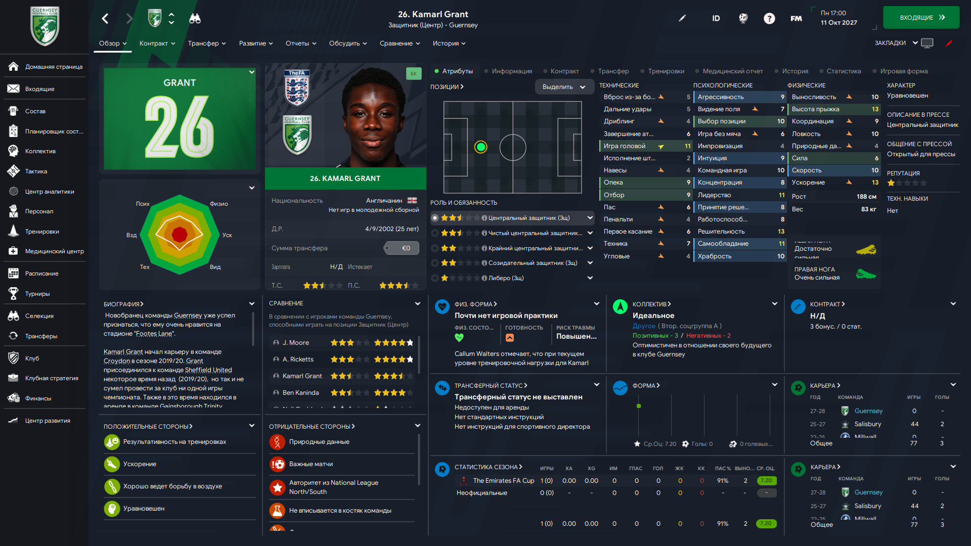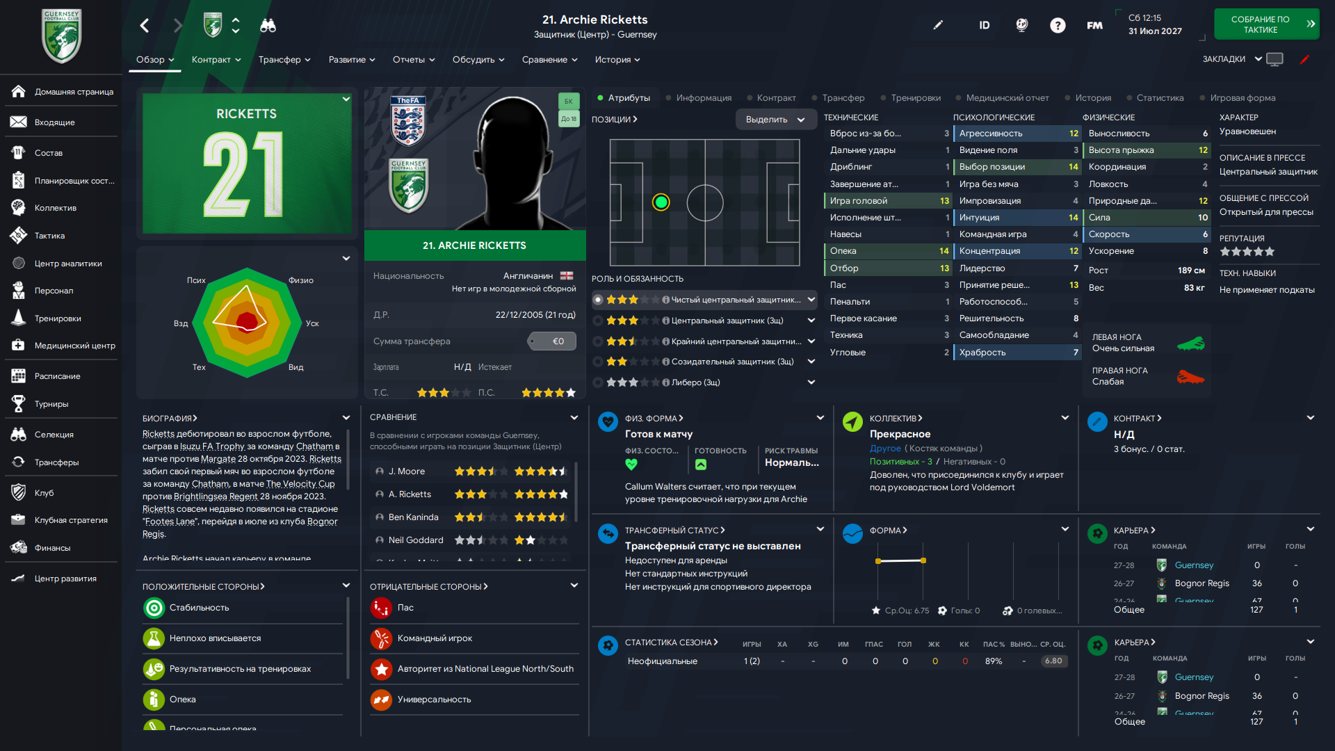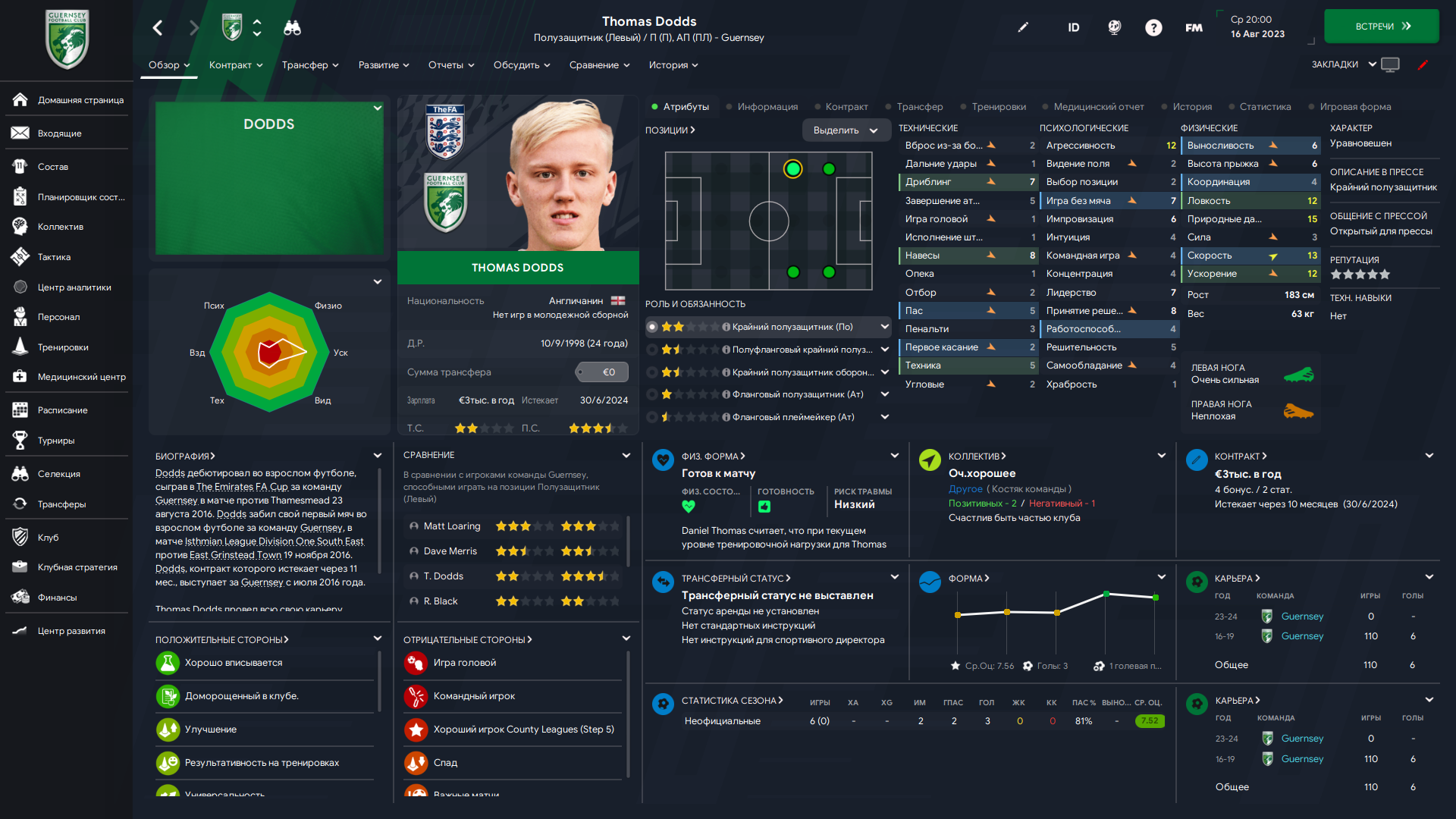 Физически развит, остальное наработаем, надеюсь. Сделал 14 ассистов в 7 дивизионе, к нам перешёл почти за 6 тысяч евро.