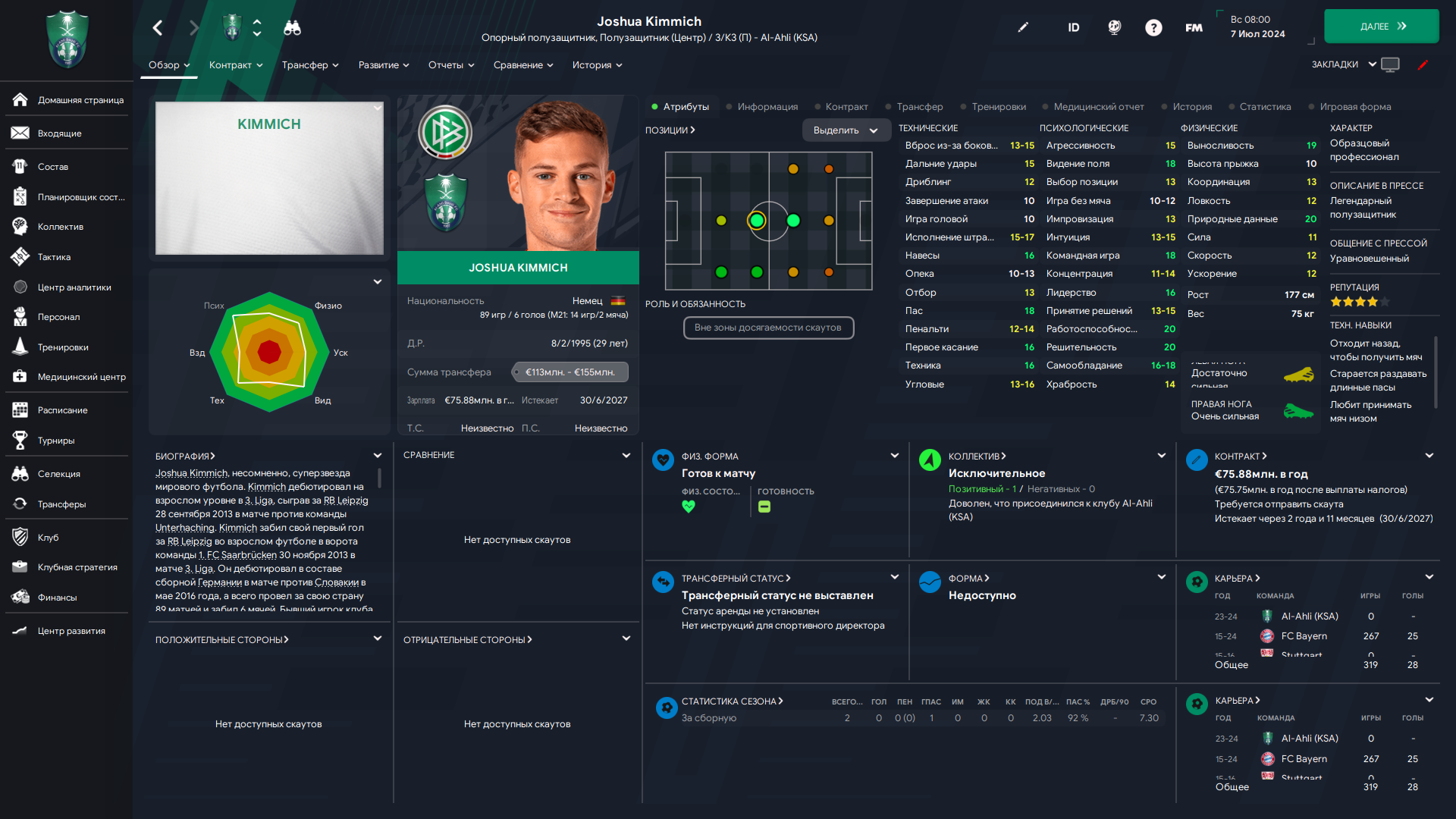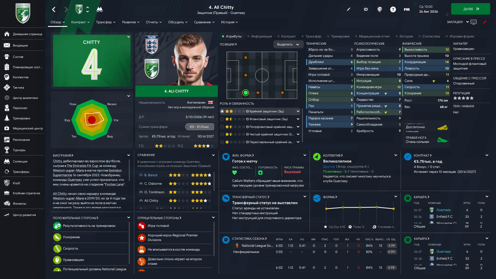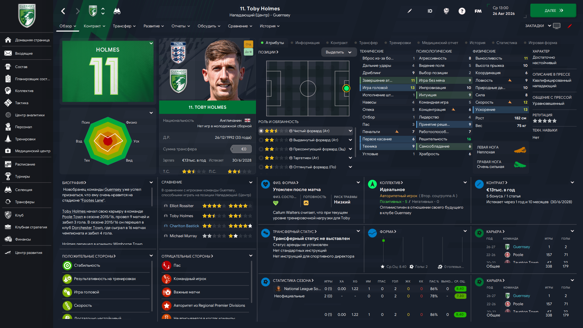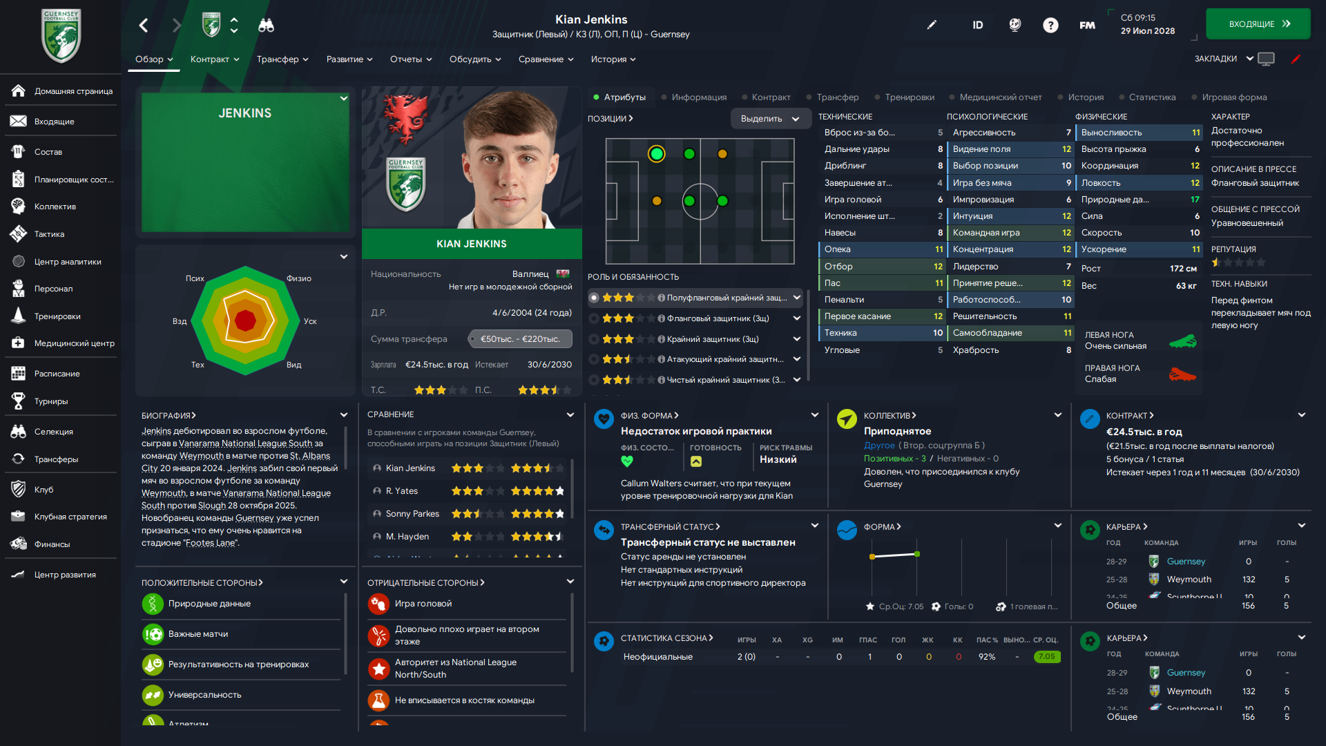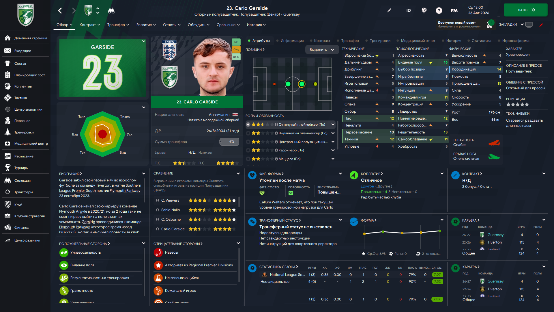 Физически развит, остальное наработаем, надеюсь. Сделал 14 ассистов в 7 дивизионе, к нам перешёл почти за 6 тысяч евро.