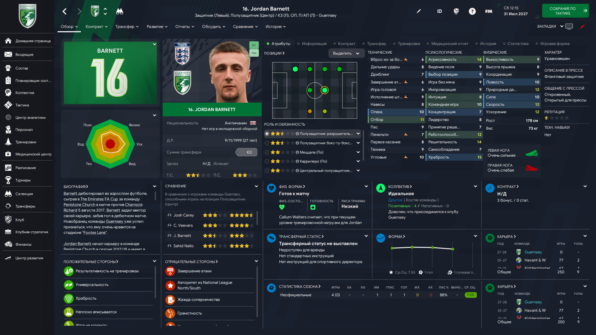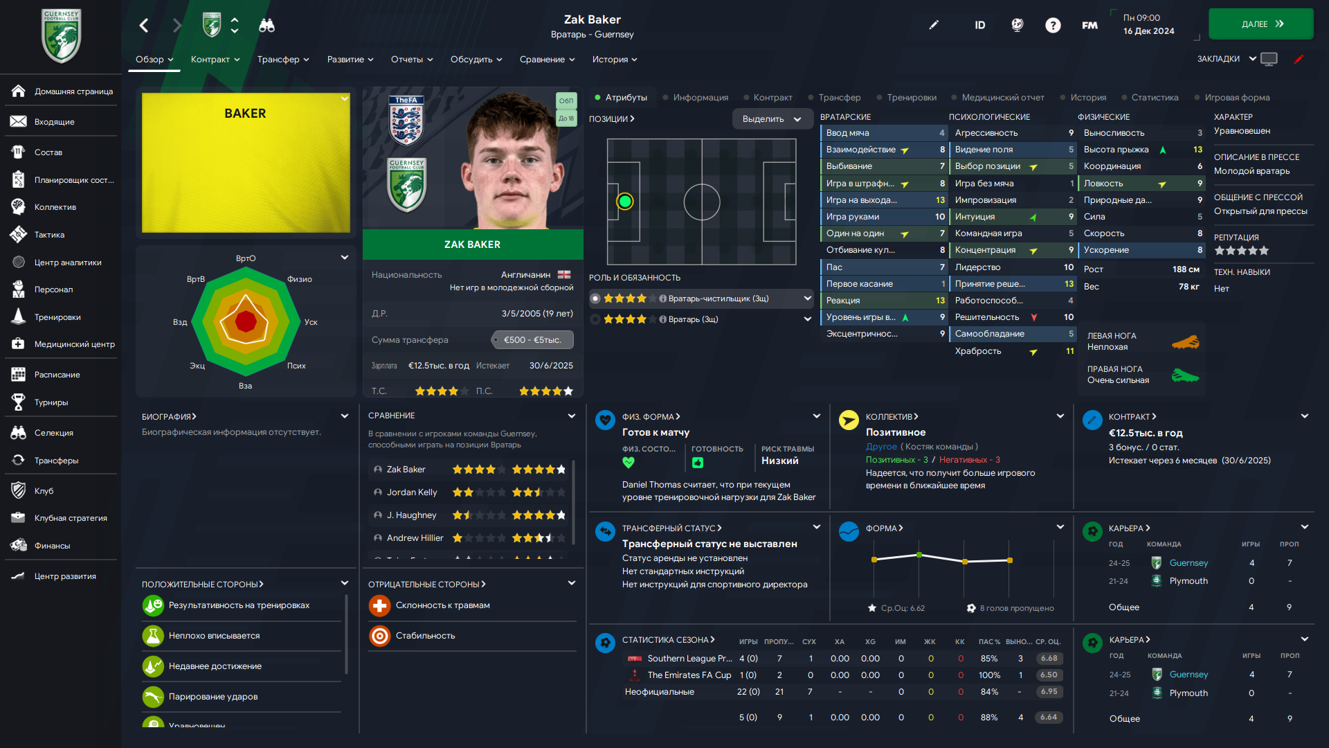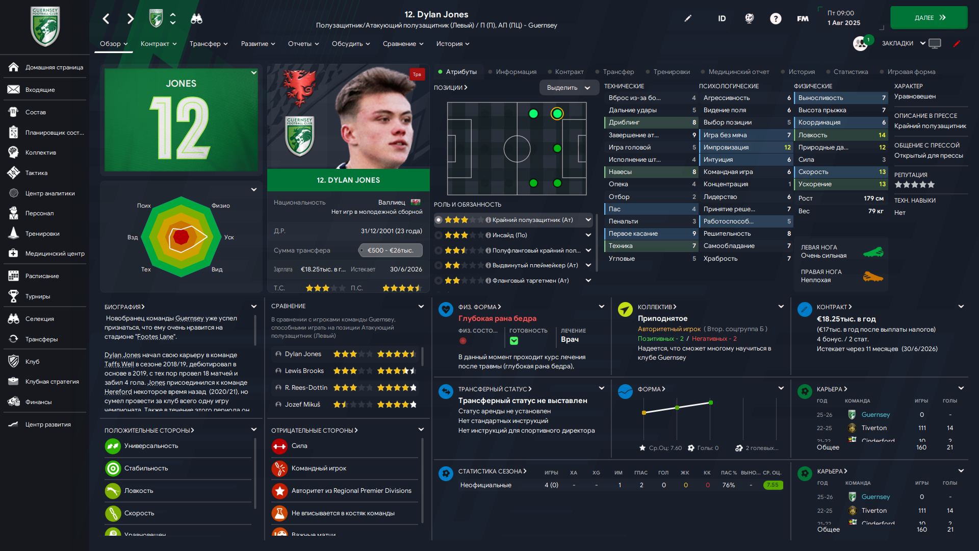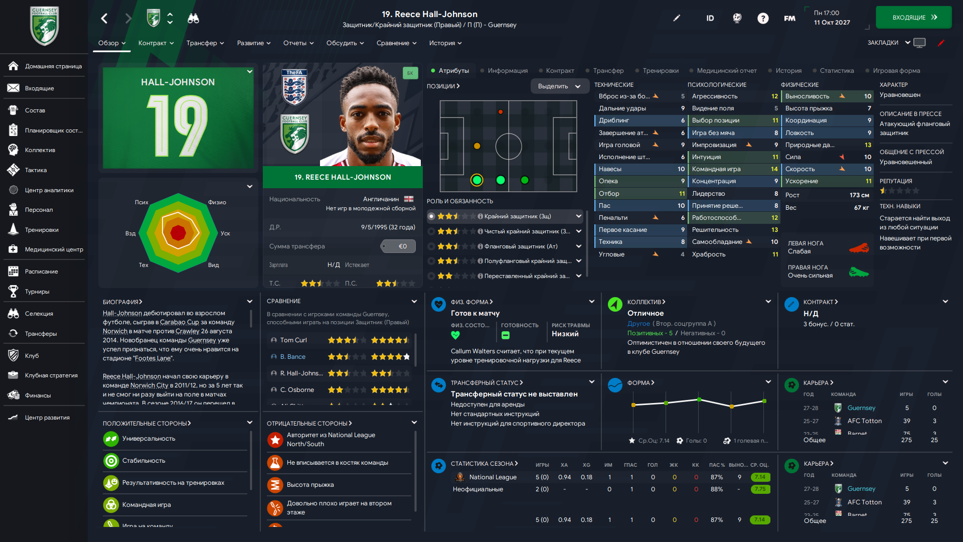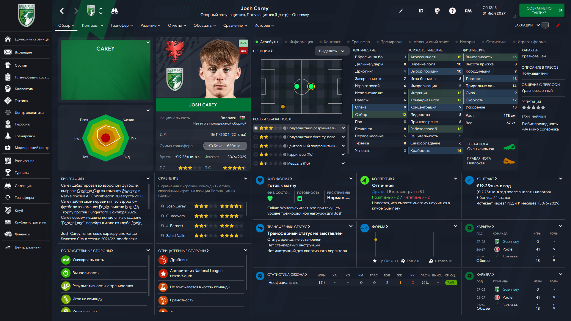 Физически развит, остальное наработаем, надеюсь. Сделал 14 ассистов в 7 дивизионе, к нам перешёл почти за 6 тысяч евро.