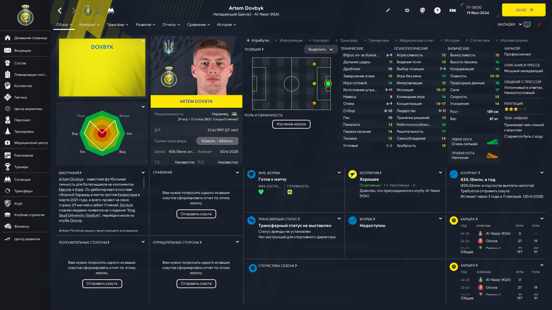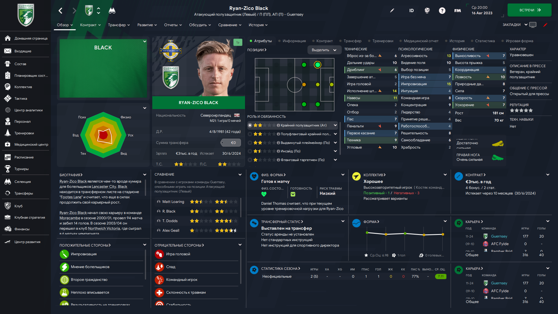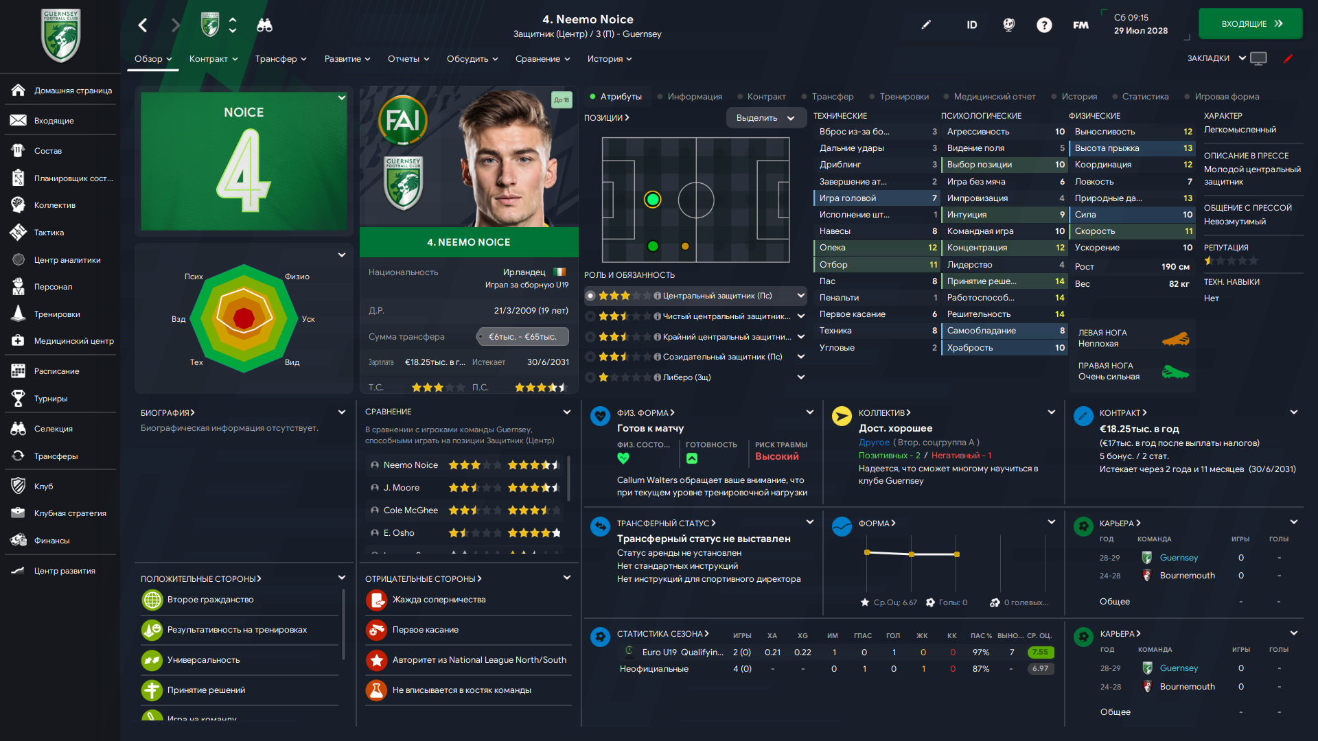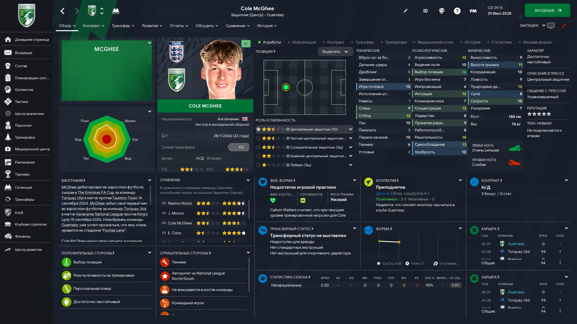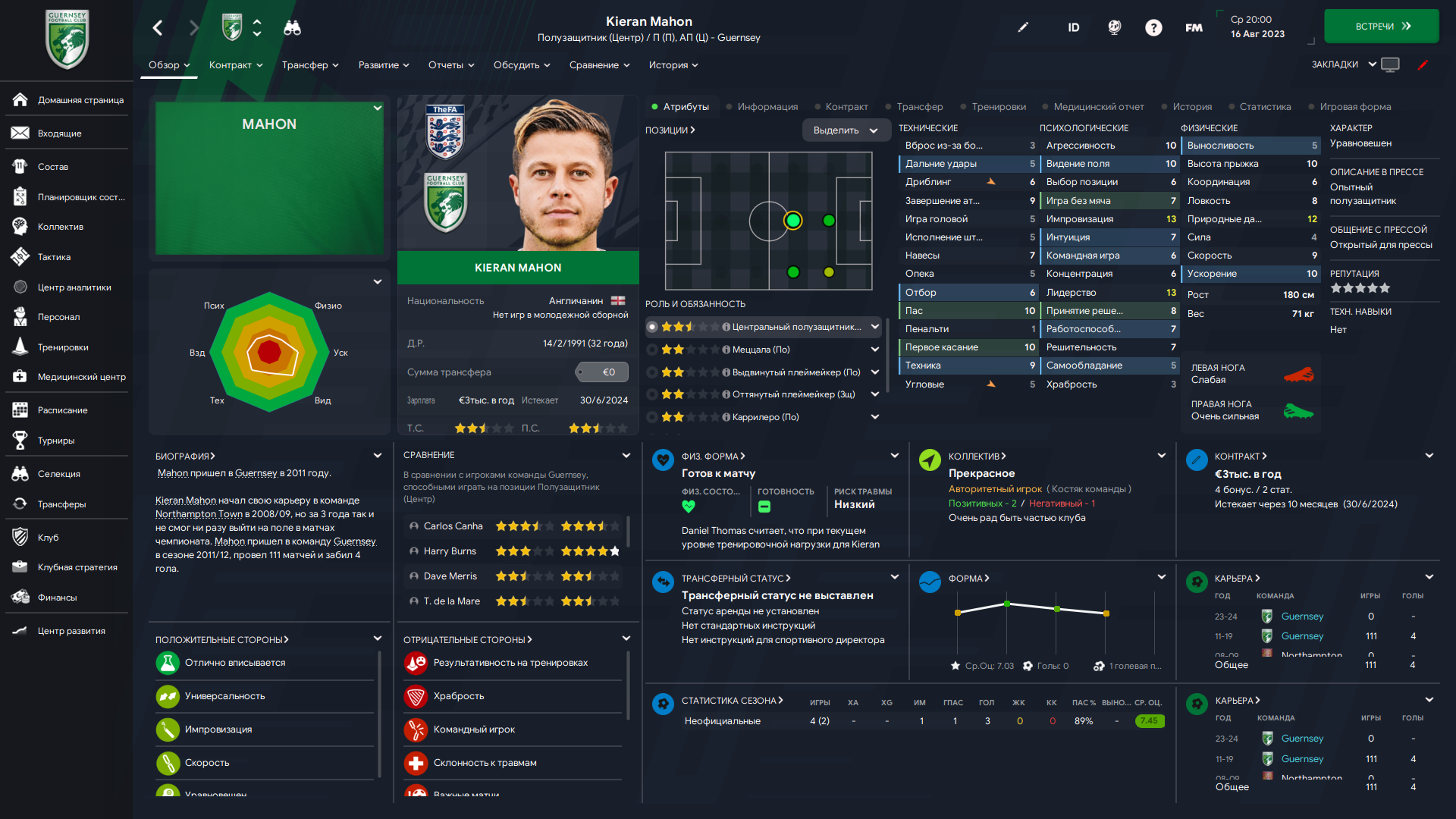Физически развит, остальное наработаем, надеюсь. Сделал 14 ассистов в 7 дивизионе, к нам перешёл почти за 6 тысяч евро.