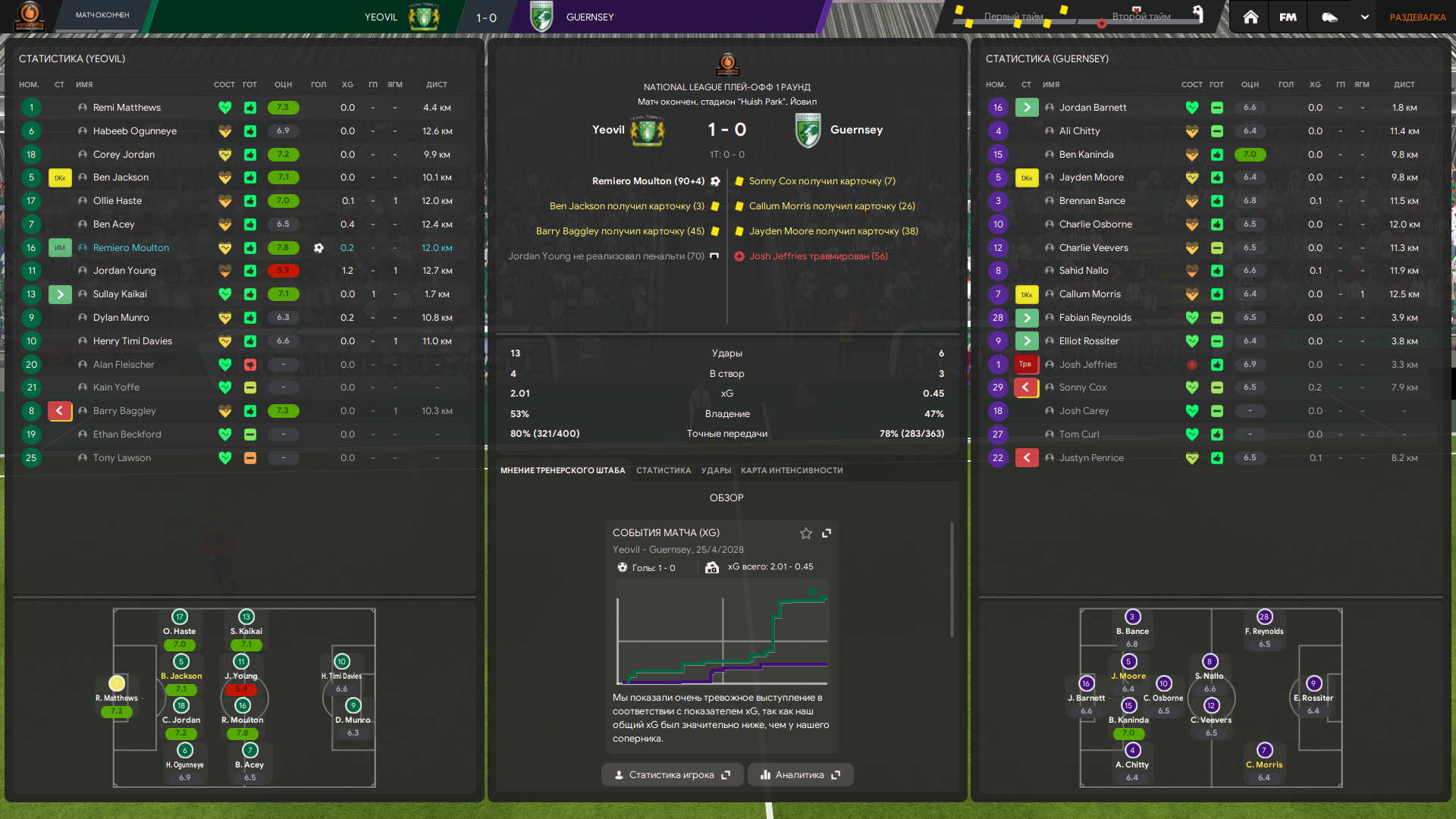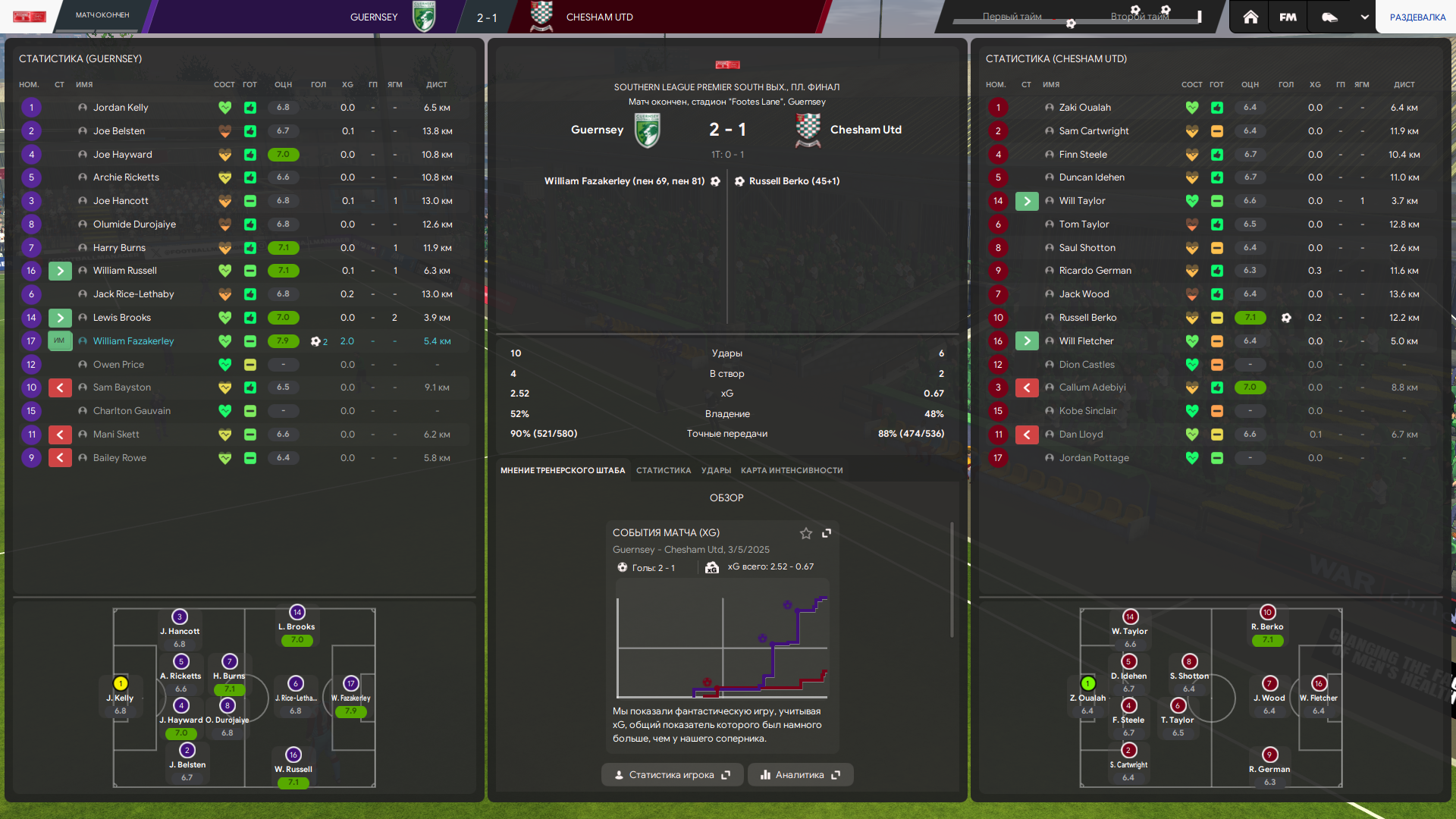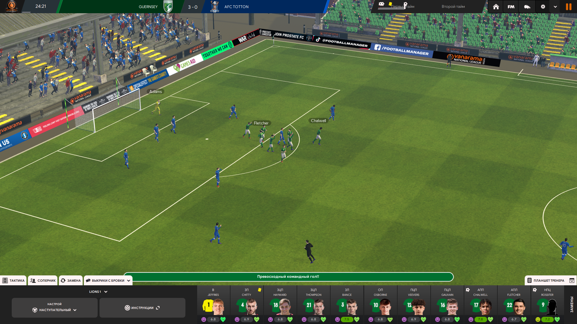 Тренерский штаб у меня топовый по всем показателям в лиге, но тоже не думаю что это решает. Это скорее влияет на тренировку и скорость прокачки футболистов, а не на сам результат игры непосредственно.