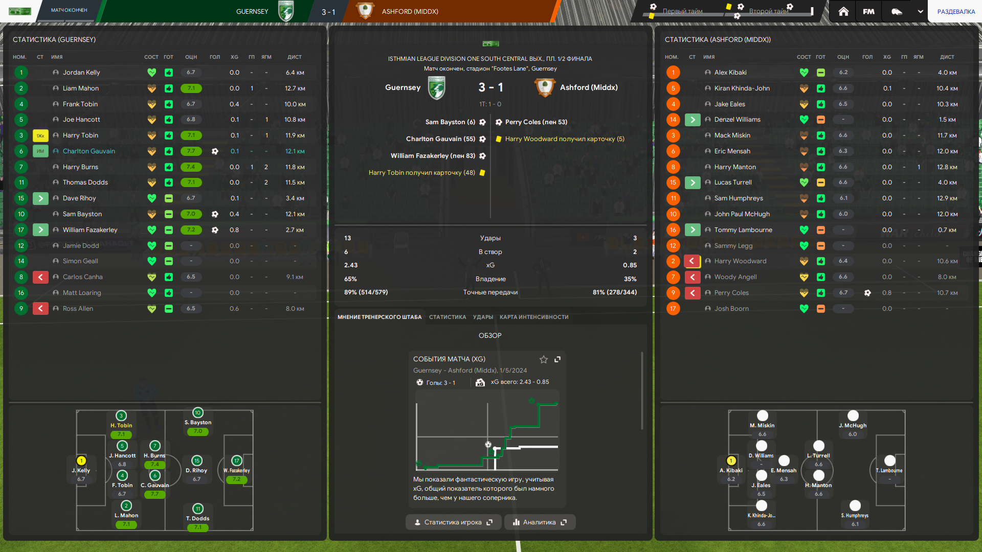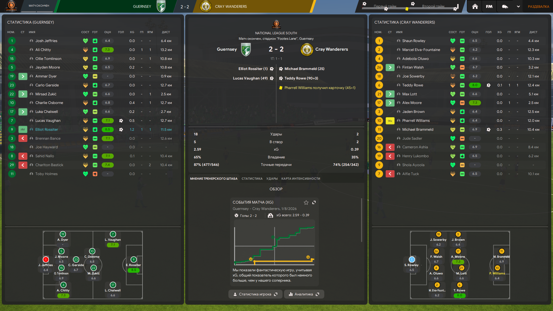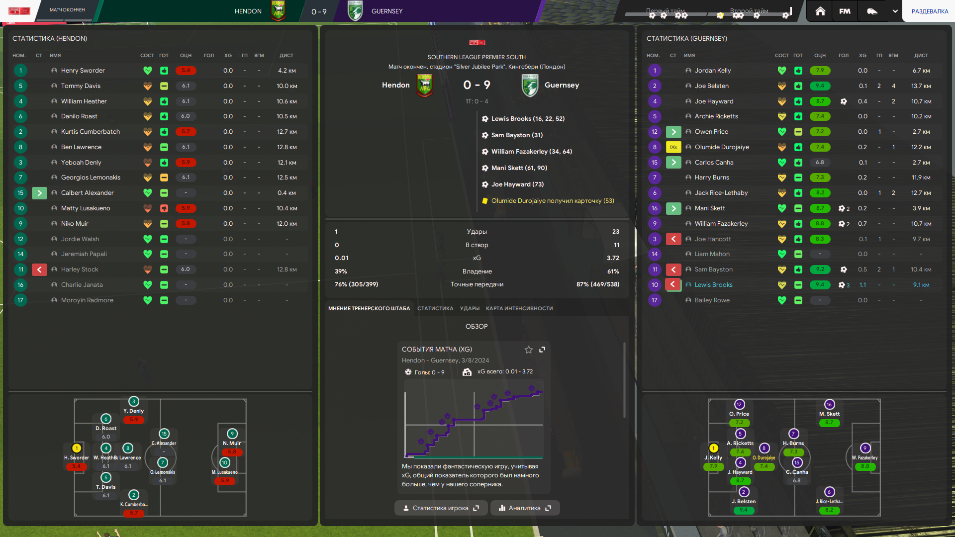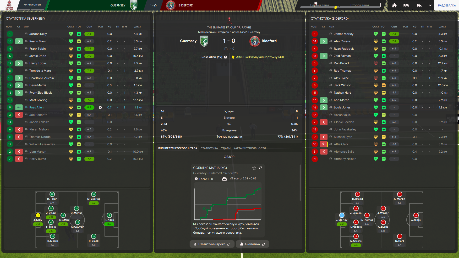 Тренерский штаб у меня топовый по всем показателям в лиге, но тоже не думаю что это решает. Это скорее влияет на тренировку и скорость прокачки футболистов, а не на сам результат игры непосредственно.