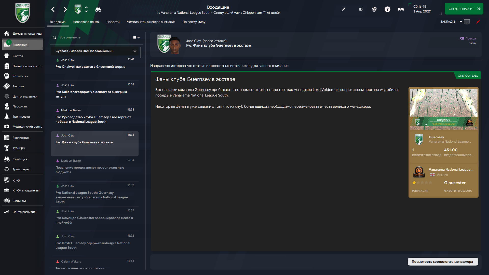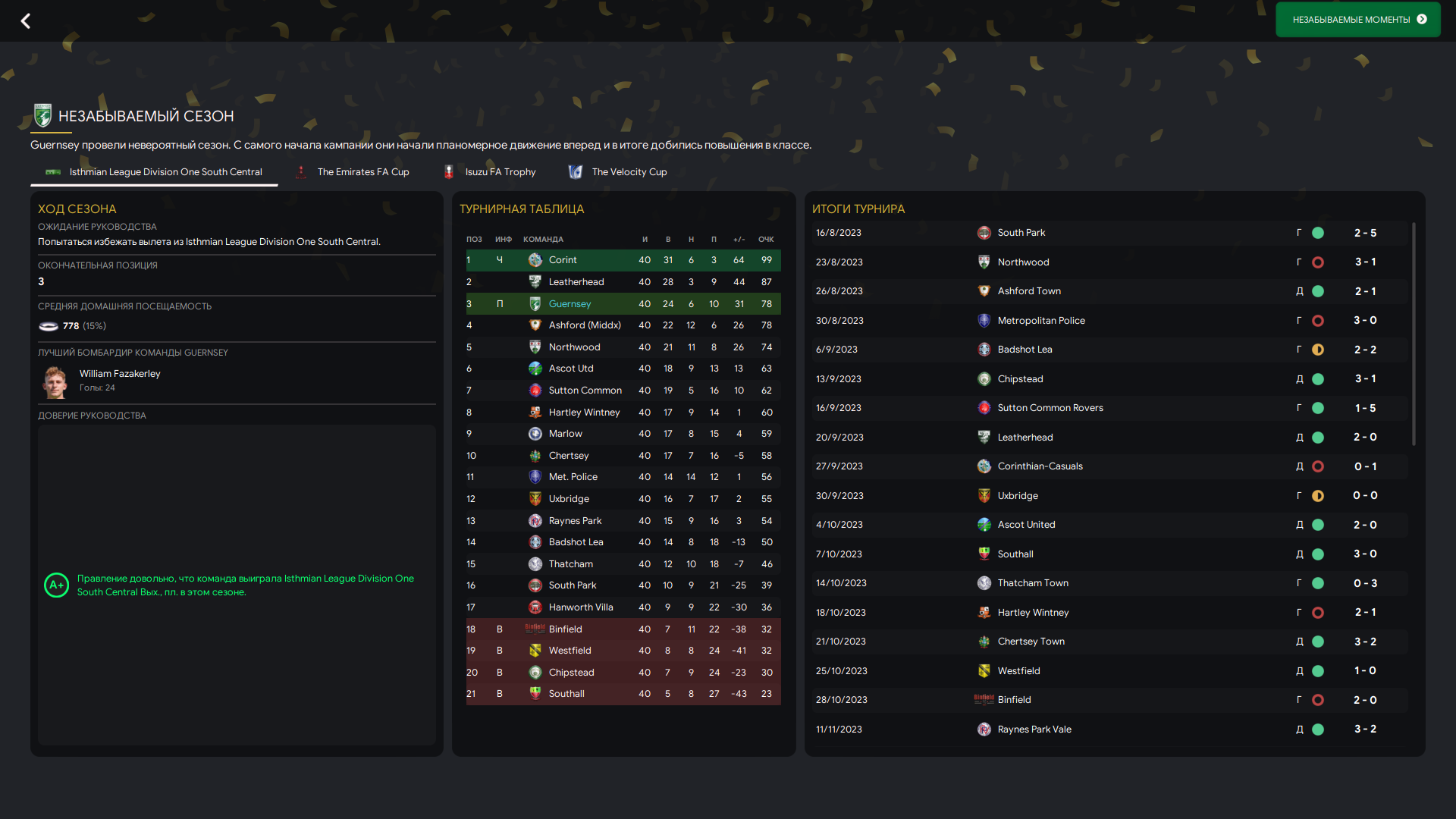 Мы пересобрались с нуля после 17 места и забрали своё, нас ждёт основная Ванарама, пятый дивизион, Тёмный Лорд продолжает захват футбольной вселенной, Гернси продолжает писать свою великую историю.