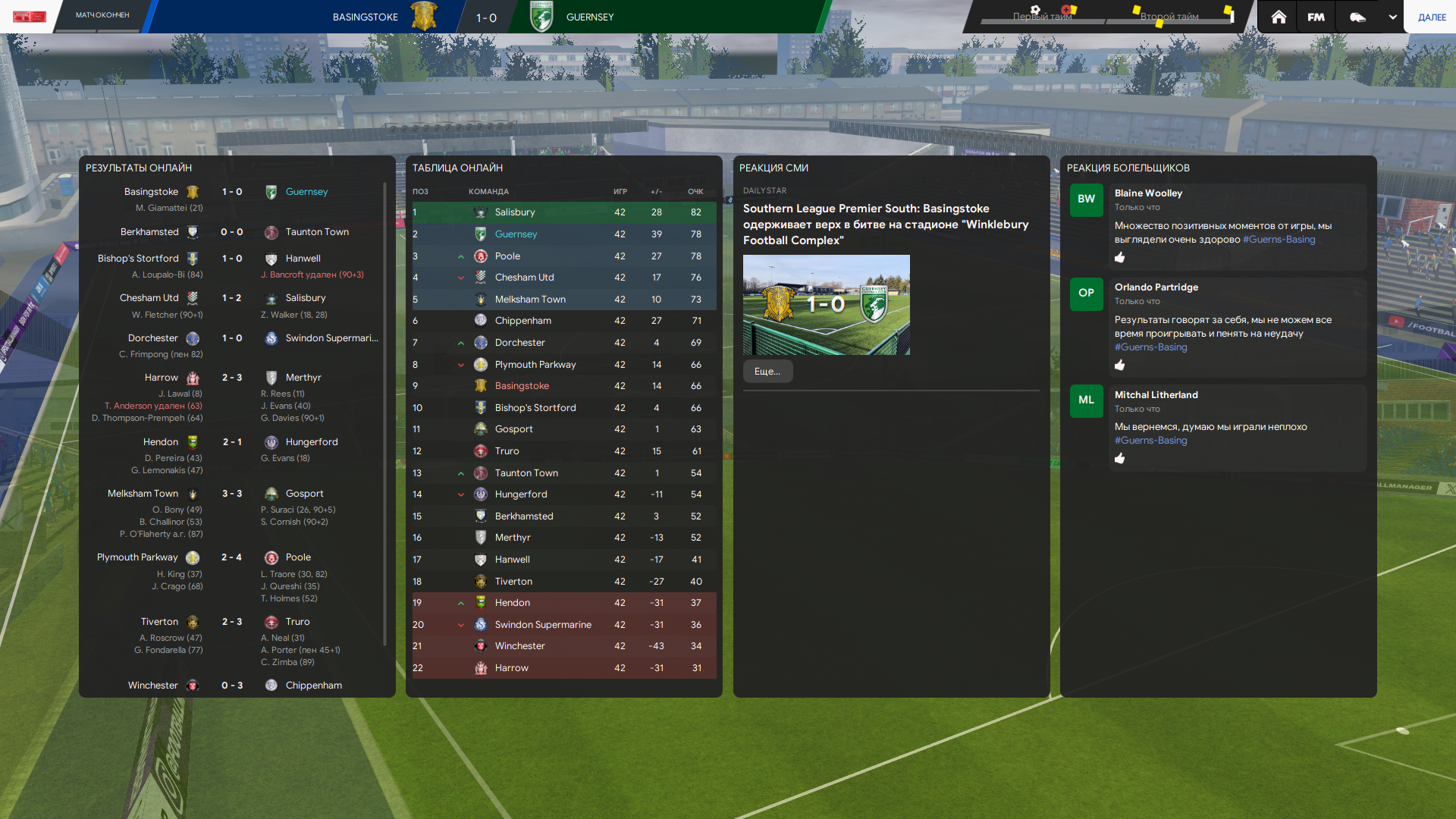 Но всё было бы слишком сладко, если бы мы решили всё за один матч и противостояние с Уортингом перетекло в ответку на остров футбола, после гола на 90+2 первым и единственным ударом в створ, где мы уверенно взяли верх.