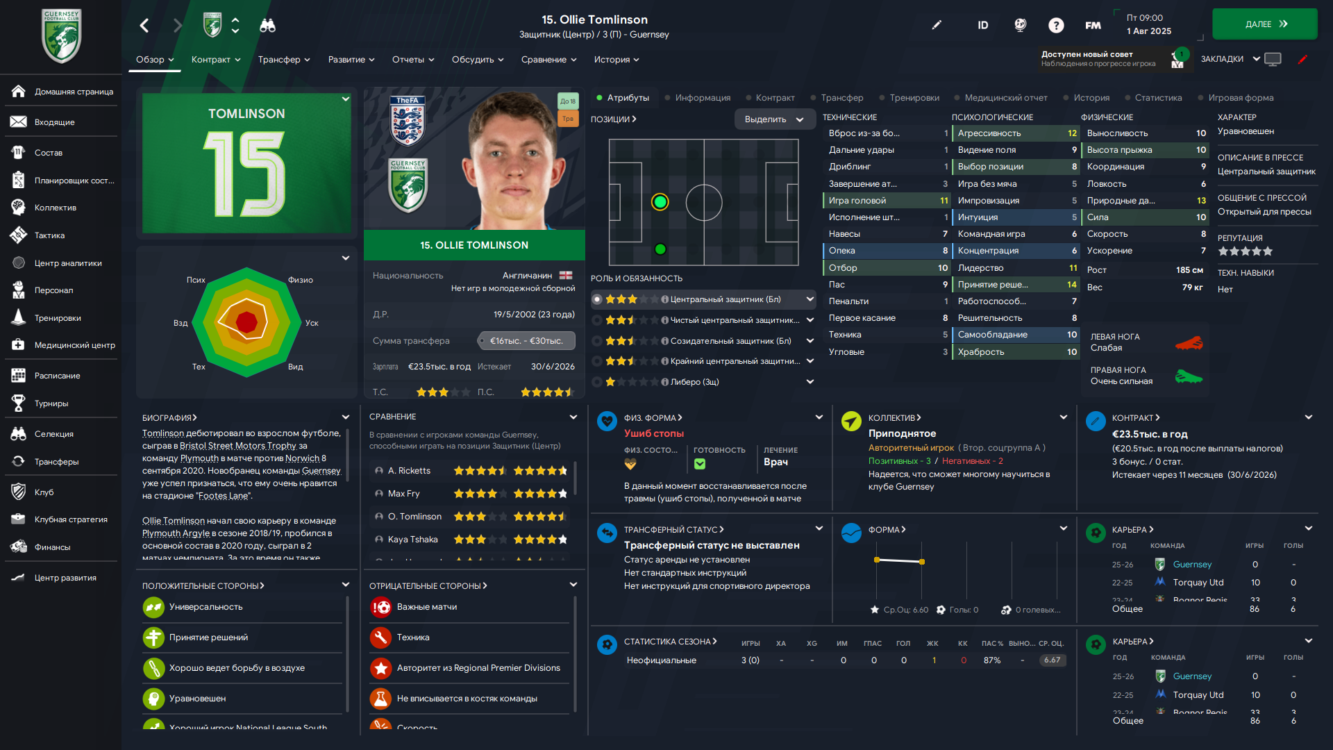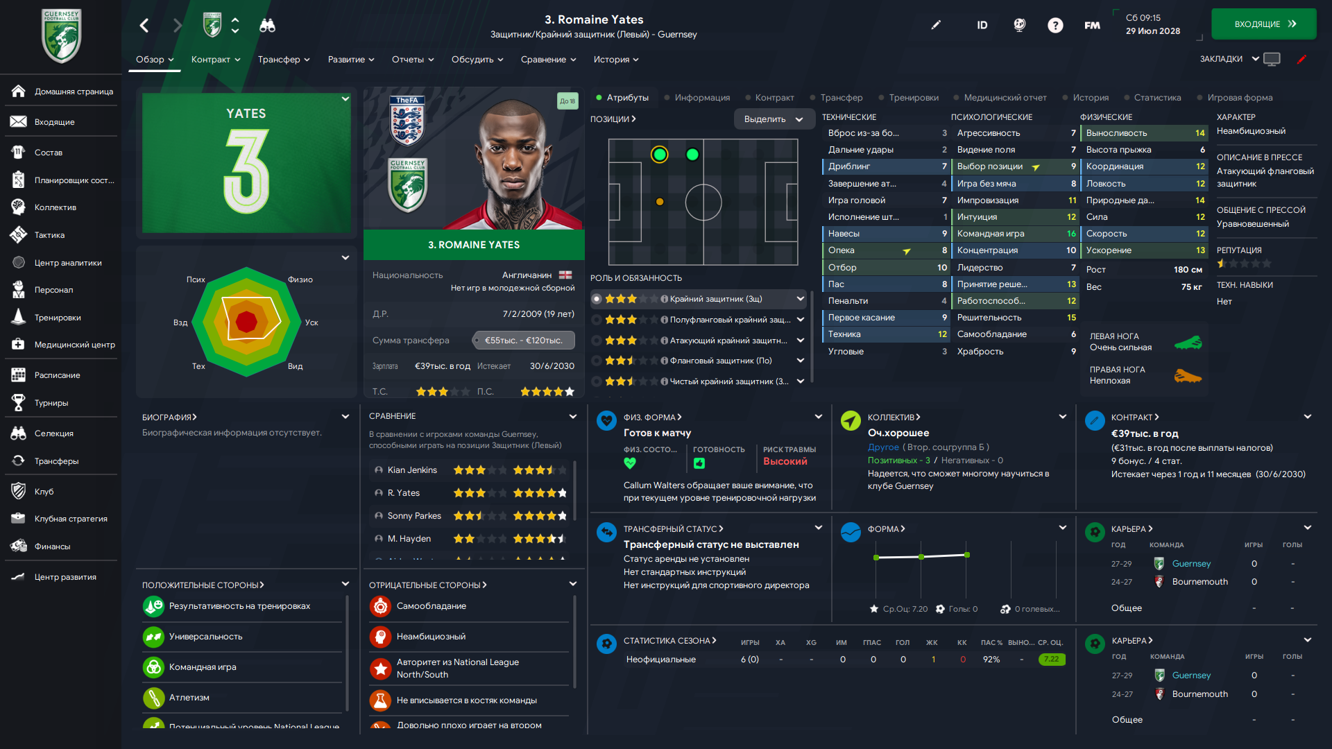 Да, вот настолько всё было плохо с ЦЗ, что пришлось возвращать этого косячника. Зато свой, проверенный, левоногий. Плюс мы выждали и взяли его играть за пачку сухариков, что не может не радовать. Но, к сожалению, пришлось снова платить за трансфер - 7 тысяч. Три года назад его же покупали за 6, растёт.