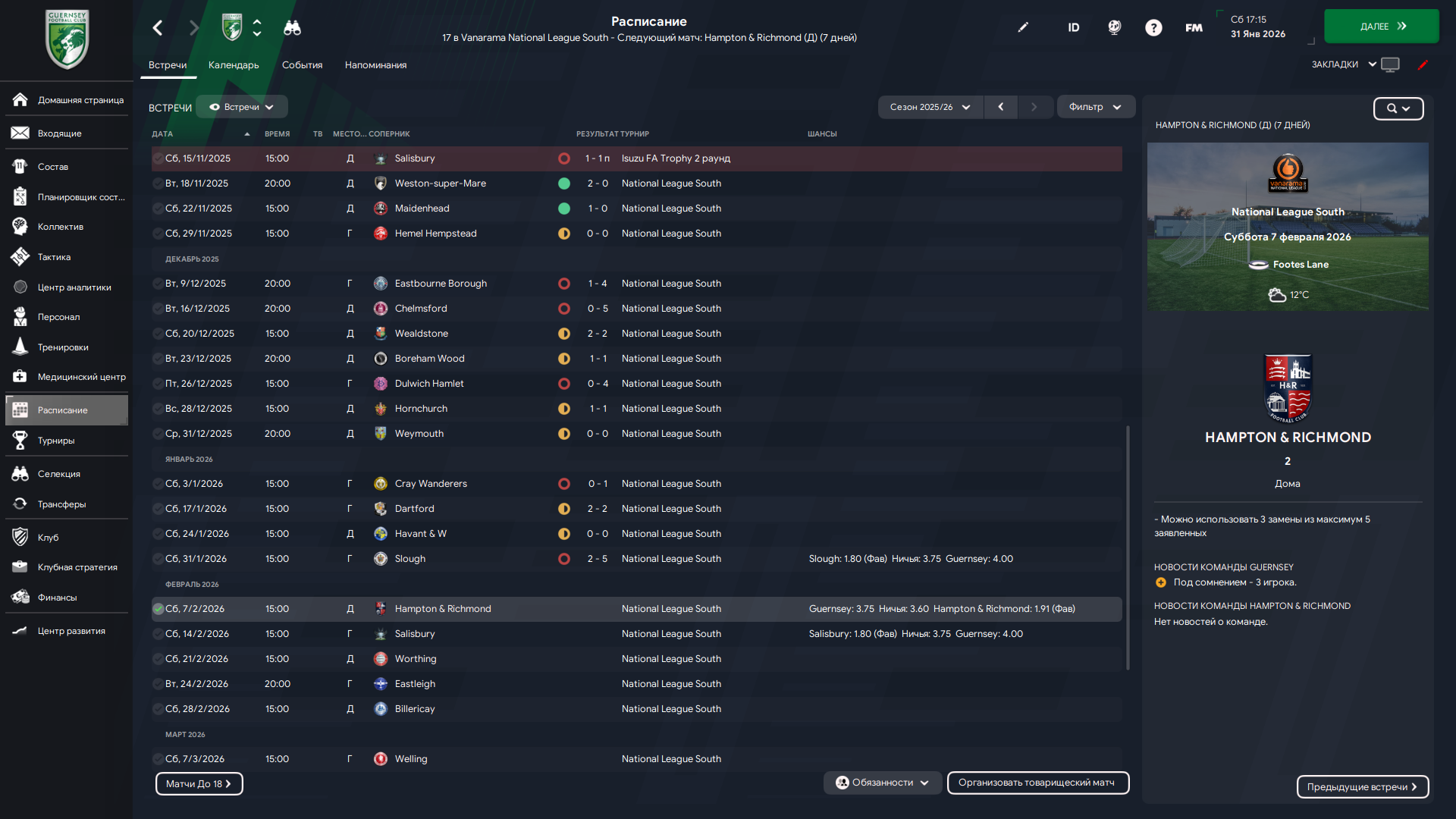Обновлённый Гернси. Часть 5. Пара подменок и ситуация в чемпионате.