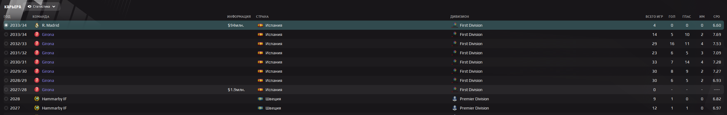 мой бывший "лучший" игрок как думаете почему у него так мало игр, если учесть , что мы играем лч? потому что эта мудила постоянно травмируется сбагрил за 94 ляма, хотя он вонял, что хотел в тотенхэм, которые только полтос давали ахуевшие мы действующие чемпионы ЛЧ, но у меня нап хочет в баварию, а этот уебок хотел в ттх испанию мы ебем уже 3/4 последних чемпионств наши, мы лучший клуб испании, нол игрочишки хотят в баварию блядь кручу сейв от нехуй делать уже жду когда за шведа предложат бабки потому что пункт на 20% с прибыли есть, главное быстрее пока он окончательно не поломался там уже, чего я конечно ему желаю