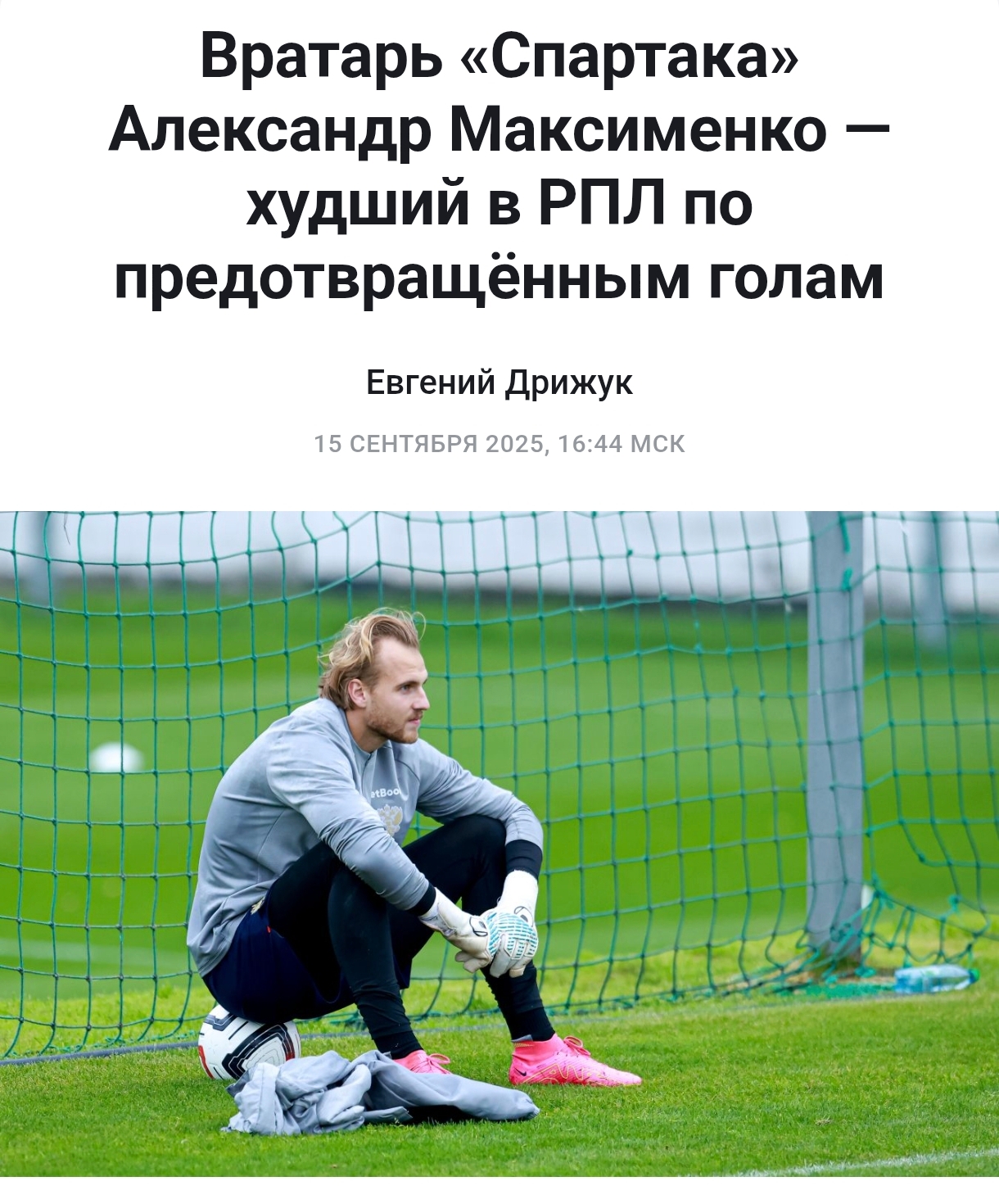 В РПЛ сейчас нет еврокубковых мест — для истории важно только одно: первое. Ты уже его не займешь. Потрать остаток сезона на то, чтобы молодой талантливый (а это видно) вратарь играл и набивал шишки. Я не спорю, он может привозить из-за отсутствия опыта, но смысл ставить таких же привозных Лунева и Лещука, которые уже сформировались в дырявых клоунов — и это их потолок? Ставь молодого.