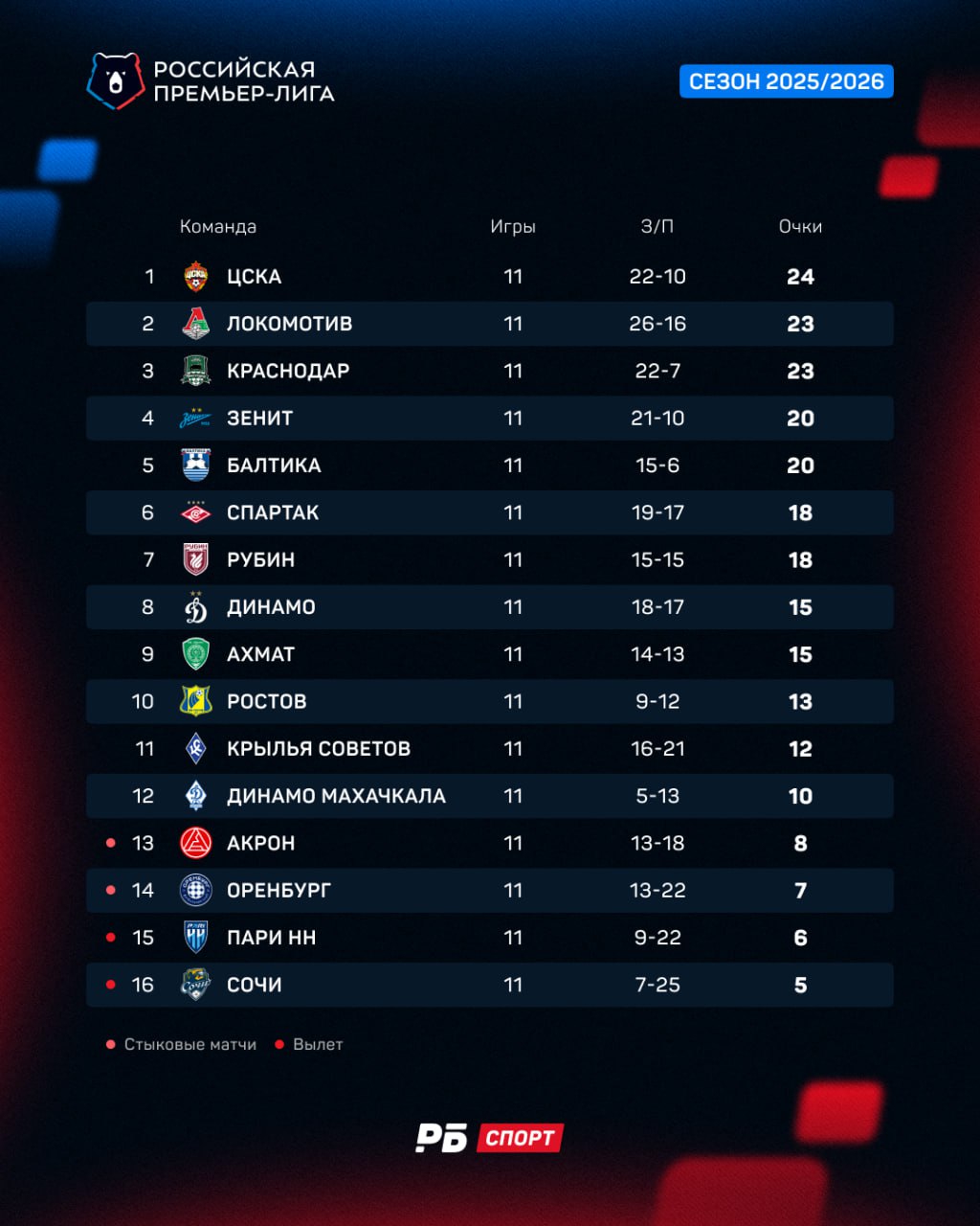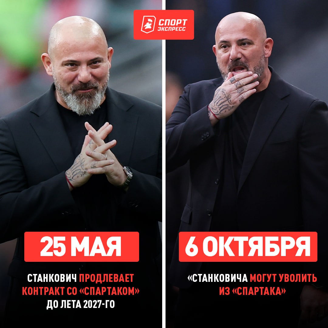 ⚡️ Деян Станкович остаётся главным тренером «Спартака»: на сегодняшнем заседании совета директоров красно-белых было принято решение не увольнять серба. После 11 туров нового сезона москвичи идут на 6-м месте в таблице РПЛ, отставая от лидирующего ЦСКА на 6 очков: Станкович уже 4 матча не руководит командой из-за дисквалификации — «СЭ»