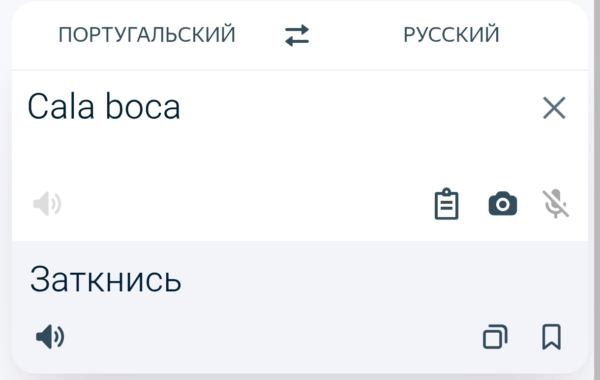 >>3406530 Они общались на смеси испанского и португальского. Версия Спермцяна: > он мне сказал: «La concha tu madre» (испанское гневное ругательство, в зависимости от контекста может означать «сукин сын» или «пошел ## ###»). На что я ответил ему на португальском «Cala boca», это значит «заткнись». Версия мукунка: > «Подошёл помочь ему встать, сказал, чтобы поднимался, потому что ничего там не было. Момент уже прошёл, он приблизился ко мне, толкнул и сказал на португальском: «Закрой рот, чёрное говно»