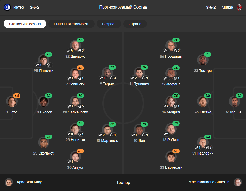 >>3415394 >после Карло Анчелотти, Нерео Рокко, Фабио Капелло, Стефано Пиоли, Нильса Лидхольма и Арриго Сакки. Без шуток это легендарная компашка. Через лет 50, Аллегри будет стоять с этими именами через запятую, и это будет справедливо.