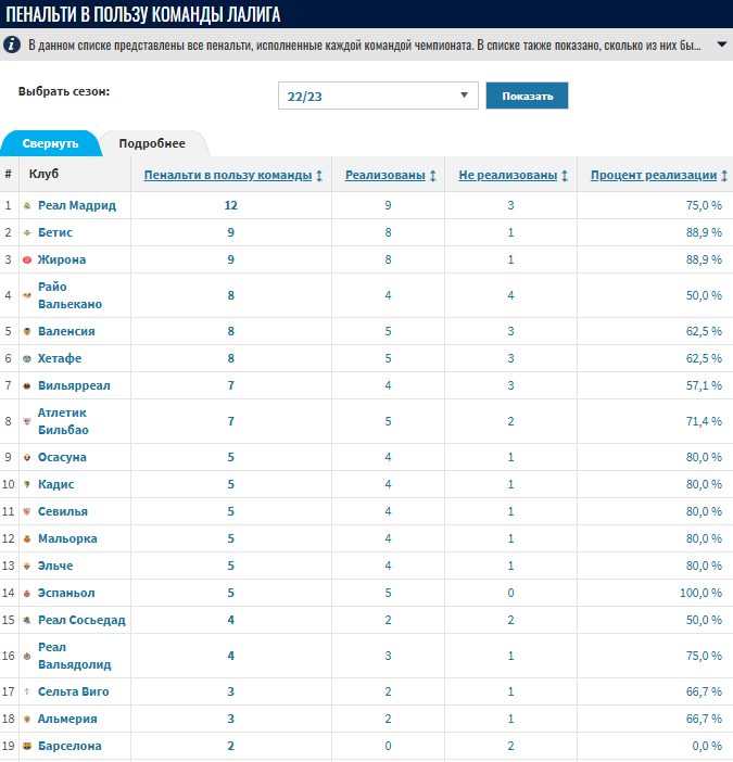 Зато в сезоне 22/23, когда говнид вардрид гнался за Барсой, то вновь пробивали аж 12 раз, у Барсы же скромные 2, не кабинет, твёрдо и чётко, грязная лига Негрейры))
