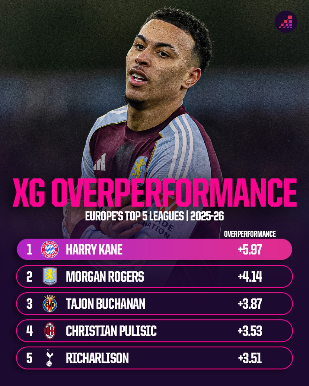 Так к настоящему времени выглядит пятёрка самых оверперформящих игроков Европы.