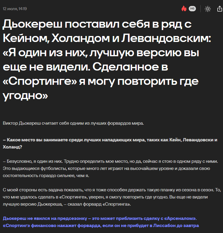 Через 6 часов обязательно приходите на Арсенал. Да, фермерская лига, это понятно кусь, но матч намечается интересный. Подойду как раз примерно за полчаса, немножко освежусь и можно смотреть. А помните, не знаю какие у вас каналы были, но на 7ТВ показывали много всякого и тогда Арсенал как раз был крутой. А тот гол Беркампа мы видели чуть ли не в прямом эфире, как и гол Ривалдо через себя. У меня отец не такой прям фанат футбола, но про Ривалдо сказал, вот это мол он красиво сделал, типа бразилец короче, кудесник мяча. Но вот Беркамп не бразилец совсем, но понятно что он имел в виду, европеец он всё равно чуть более прагматичный наверное, особенно в те годы, это сейчас бразильцы в прессинге ишачат Короче приходите очень одиноко