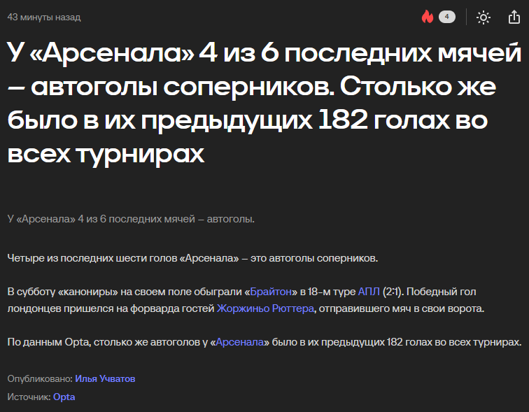 Фухбля. Закончил свой футбольный марафон. Проспал пол дня, начал смотреть матчи в записи, инет особо не открывал, в инет не вылазил, чтобы не заспойлерить себе счет. Начал естесно с матча Сити. Ну хули тут сказать, Шерки гений. Я ещё когда матч смотрел, мне кент отправил "))))", сообщение не открывал, видел только всплывающее уведомление. Но поскольку он это написал, а я смотрел матчи с задержкой, то я начал думать, что Арсенал потерял очки. Вторым матчем сел смотреть Арсик. Сначала 1-0, ну думаю похуй, че. Потом 2-0, думаю да не, быть не может чтобы Арсенал тут очки потерял, корещ наверно что-то другое имел ввиду скобочками. Смотрю дальше, 2-1, ебать, Брайтон давит, реально, натурально ДАВИТ, я реально поверил в СКОБОЧКИ и до 95 минуты сидел, и ждал, что щас Брайтон уже сравняет, ща будет 2-2, лол. Натурально верил, в такой подарочек под ёлку. Но в итоге матч закончился 2-1, скобочки были по другому поводу. Друг просто скинул пикрелейтед2 и подписал его "))))". Дальше сел смотреть Ливерпуль. Ничего особо интересного не запомнилось. Вирц (тот самый) наконец-то забил гол в АПЛ, Кьеза наконец-то сыграл в старте. Дальше смотрел Челси. Про Синих сказать особо нечего, кроме банального: "Рис Джейм гений, если бы не травмы, он бы получил ЗМ". Но Эмиришка, сука, просто, ебёт. Он стоит, выбрасывает куртку, и ебёт. Остановите этого титана. Сити уже пора не на Арсик смотреть, и думать как бы его с первого места скинуть, а назад, бля оглядываться, как бы там Вилла всех нахуй не скинула, лол.
