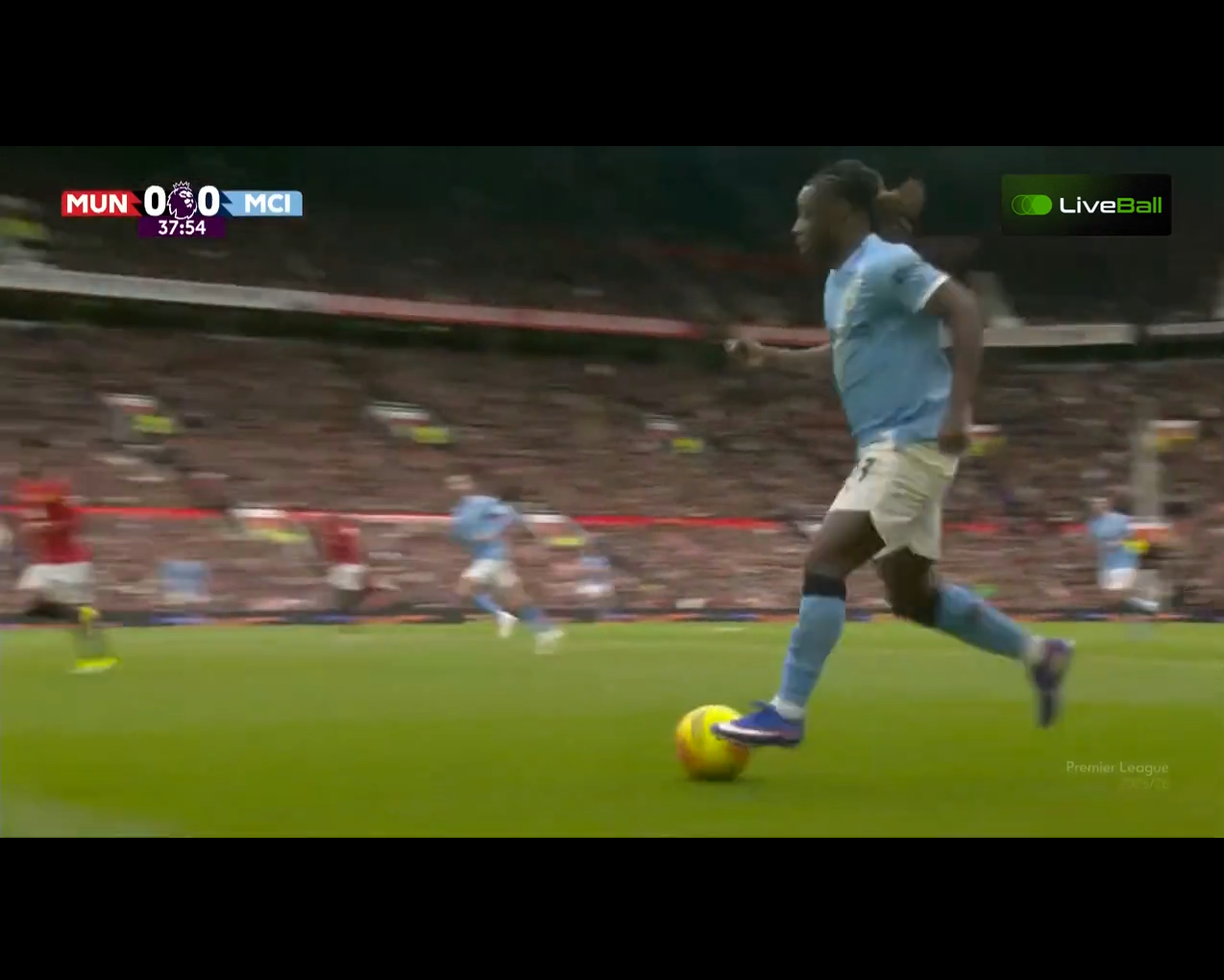 Ну пока что у Сити очень много брака, как в атаке, так и в защите. А ещё проблема в том, что защитники не могут разыгрывать мяч, Силве-2 и Родри приходится опускаться в линию к ЦЗ и разыгрывать вместо них, отчего у МЮ получается позиционное и численной преимущество на своей половине поля. Пару атак получалось только в тех случаях, когда игрок спускался, разыгрывал, мяч в центре кто-то придерживал, и Силва\Родри успевали вернутся, как бы играя за двоих.