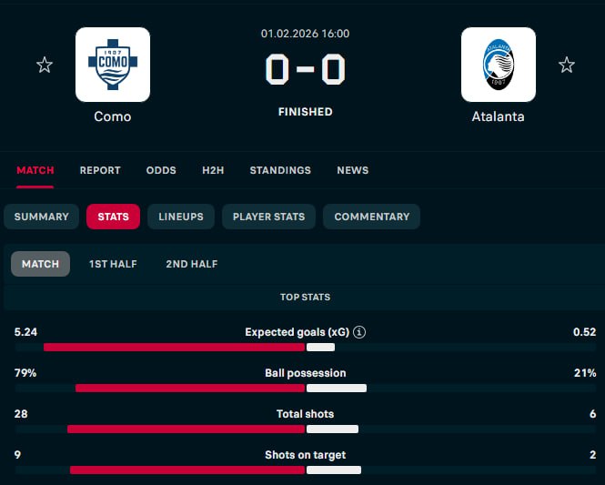 p.s. естественно xG им нарисовали будто там ёбка была целый тайм. а по факту ноль опасных моментов в большинстве за 50 минут. тренеришка каноничный тактикал-шиз хотел измором взять врага - нихуя не делать весь тайм и ждать автогола. удачи ему окончить чемпионат вне зоны ЛЧ.