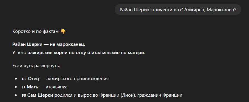 >>3432204 >Rayan Cherki was born on 17 August 2003 in Lyon, to Fabrice Amsellem, of Italian and Algerian Jewish descent, and Abla Cherki, of Algerian descent from Biskra. ЖИД, в общем.