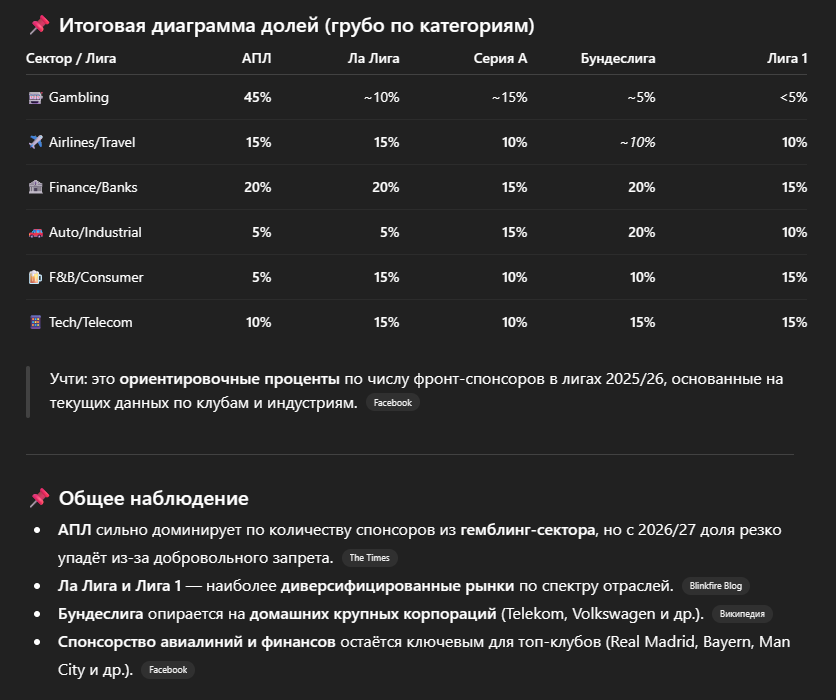 >>3432374 Заебал наверное нейрокалом, но мне это интересно, мож и вам интересно. Получается АПЛ очень сильно подсела на рекламу буков, остальные лиги не так. Германия поддерживает, а скорее поддерживается отечественным производителем, Франция самый "диверсифицированный пакет" где самое большое разнообразие отраслей спонсорства.